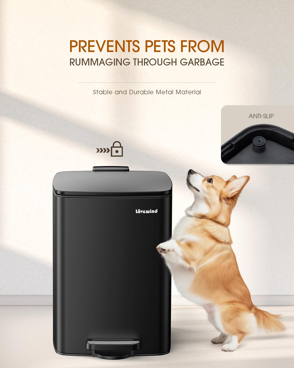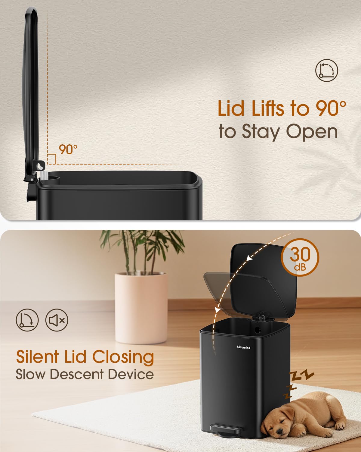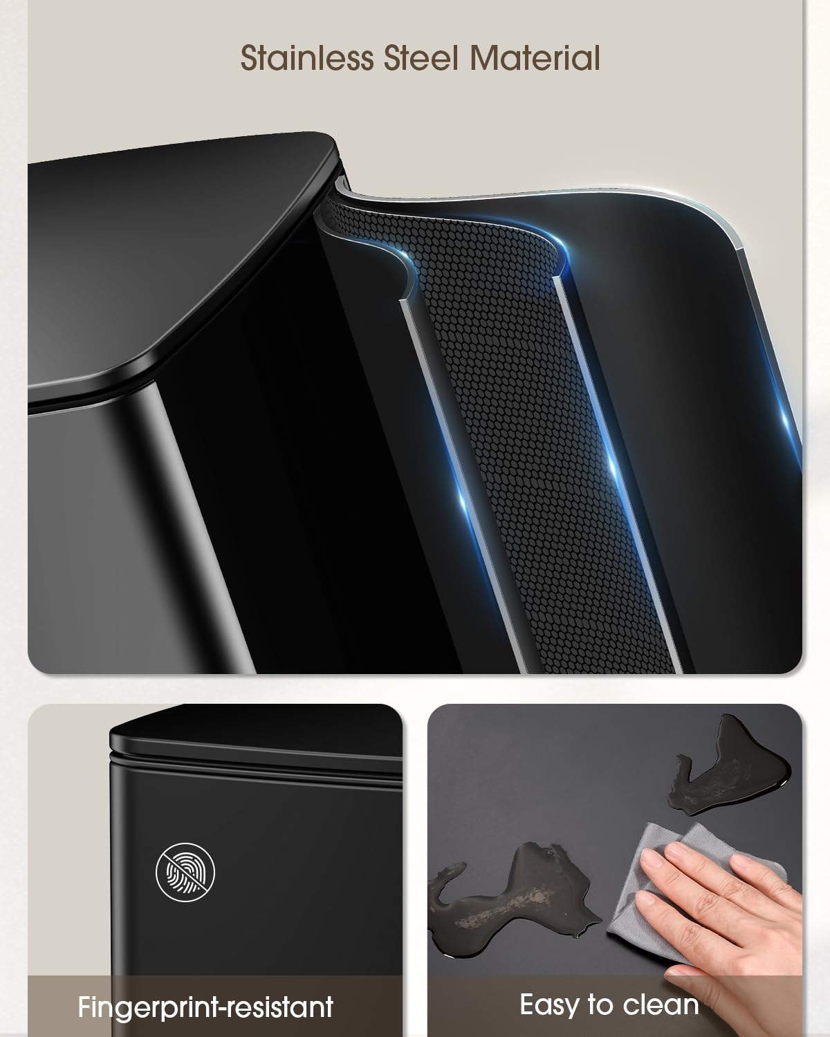 • Stainless Steel Construction: Our kitchen trash can is made from high-quality stainless steel, ensuring durability and resistance to rust and stains