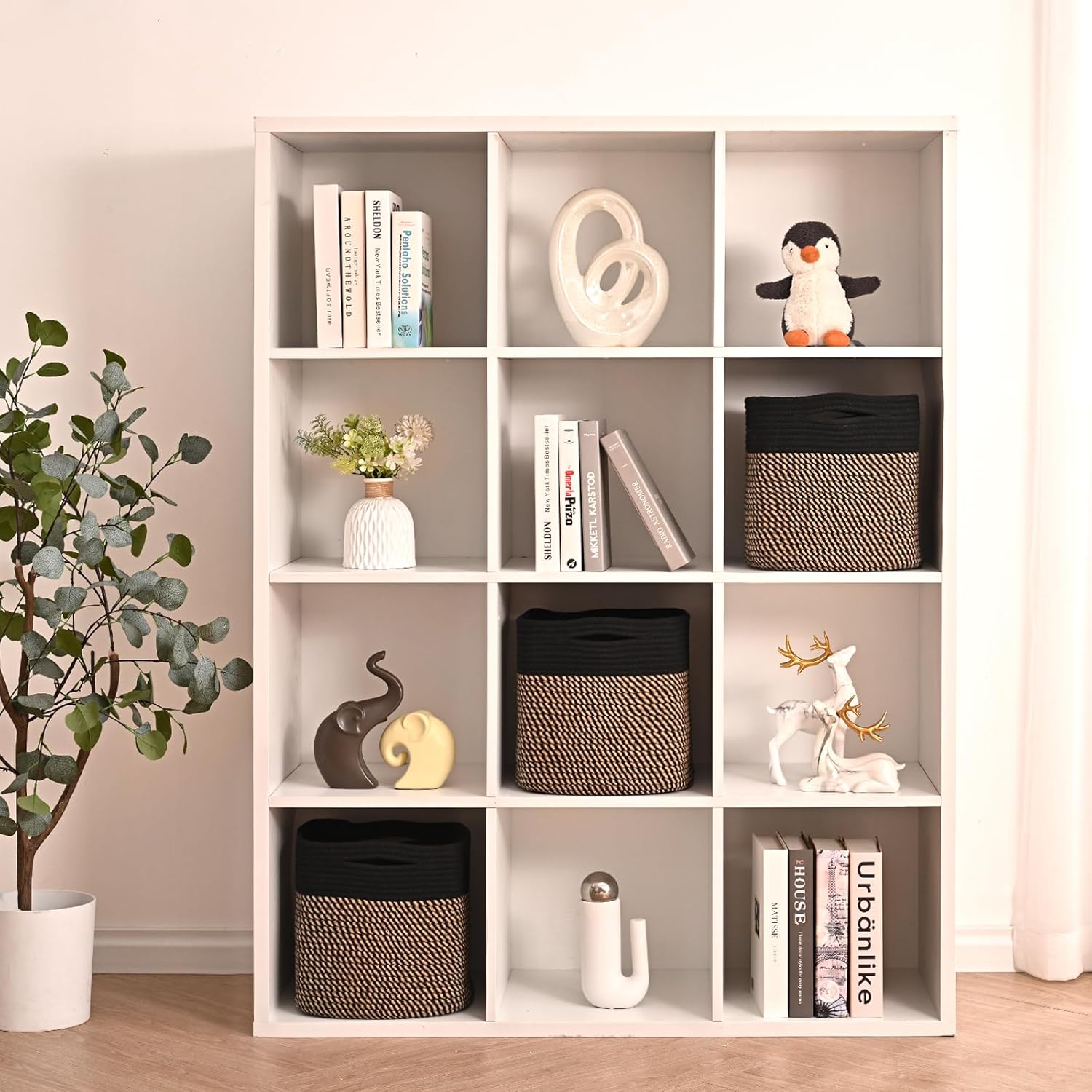 • Natural Cotton Rope Baskets for Storage: Our 11x11 cube storage bins are all made of natural cotton. These storage baskets for shelves are soft, durable, foldable and safe for children and pets. Using our woven baskets for storage to organise and store your home will give you peace of mind