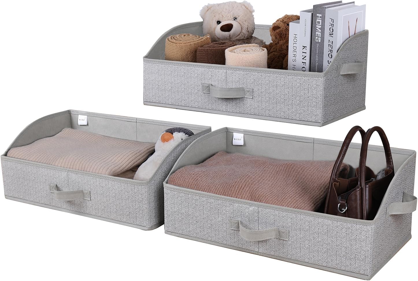 WUIKE Closet Organizers and Storage, Trapezoid Storage Bins, Fabric Closet Bins with Handles, Foldable Storage Baskets for Clothes, Purse, Blanket, Herringbone Gray, Extra Large, 3-Pack