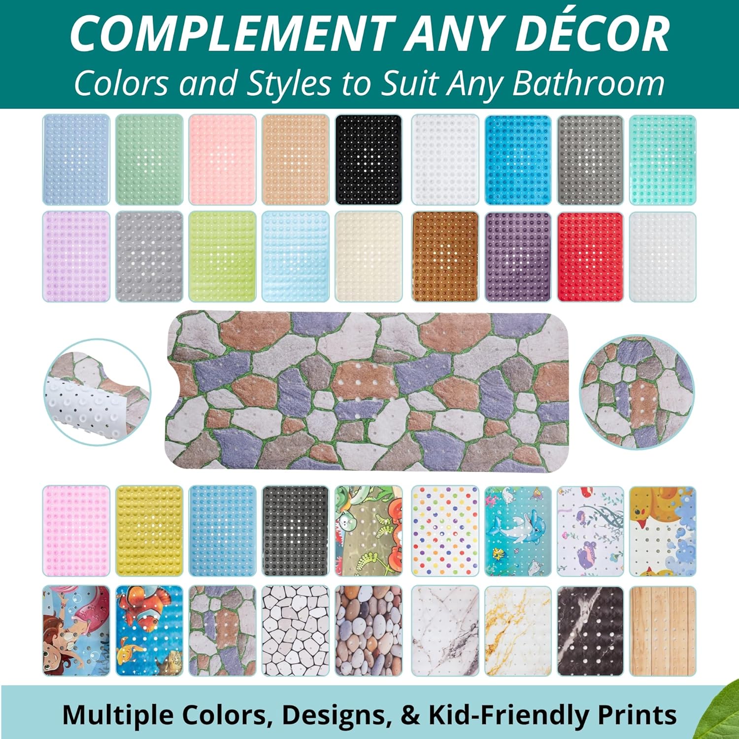 ENKOSI Bath Mat – Large 40 x 16 Inch Non-Slip Bathtub Mat with Secure Suction Cups & Drain Holes – Extra Long Bathroom Shower Mat for Tub with Stone Path Design (40x16 Stone Path)