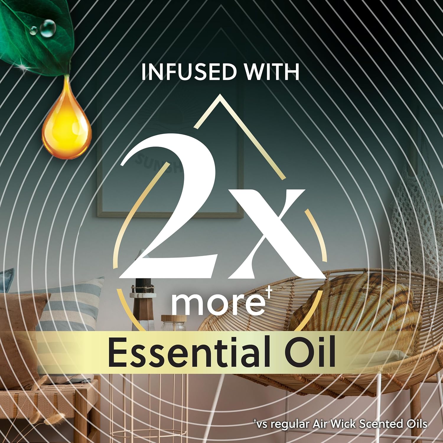 • Enhance your home’s scent with Air Wick Scented Oil Refills with continuous fragrance for up to 60 days (based on low setting). Our air freshener plug in refills are infused with 100% natural essential oils. Our latest Air Wick scented oil warmer optimizes airflow for 360-degree fragrance diffusion, reaching every corner of the room for a consistent fragrance experience. The Air Wick Scented Oil warmer allows you to choose between 5 fragrance settings for just the right amount of fragrance. It continuously diffuses and carefully blends fragrance throughout your home, office, or any space.