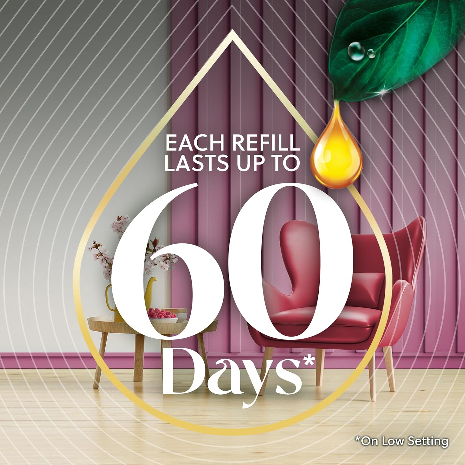 • Enhance your home’s scent with Air Wick Scented Oil Refills with continuous fragrance for up to 60 days (based on low setting). Our air freshener plug in refills are infused with 100% natural essential oils. Our latest Air Wick scented oil warmer optimizes airflow for 360-degree fragrance diffusion, reaching every corner of the room for a consistent fragrance experience. The Air Wick Scented Oil warmer allows you to choose between 5 fragrance settings for just the right amount of fragrance. It continuously diffuses and carefully blends fragrance throughout your home, office, or any space.