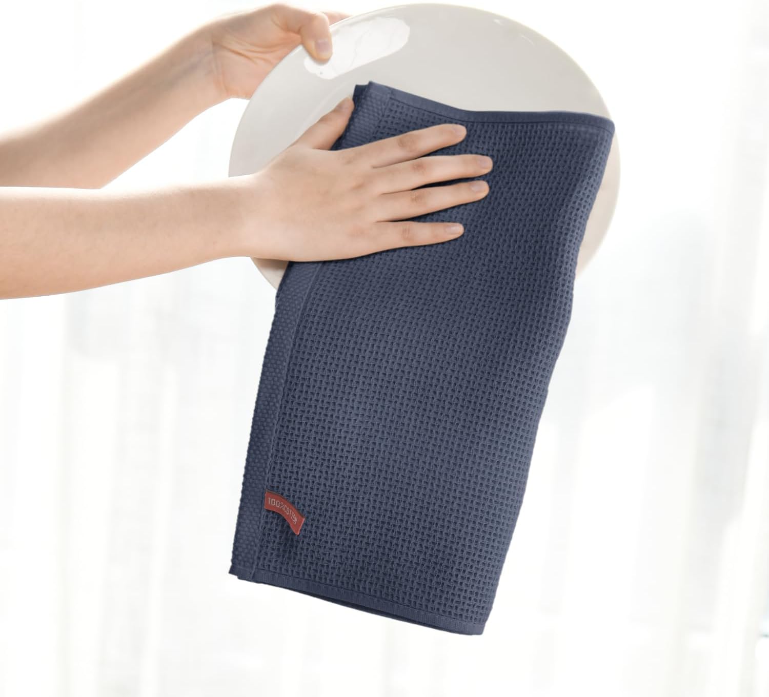 Artoid Mode 100% Cotton Navy Blue Light Dark Grey Waffle Weave Kitchen Dish Cloths, 12x12 Inch Ultra Soft Absorbent Quick Drying Kitchen Dish Towels Set of 6, Multicolor