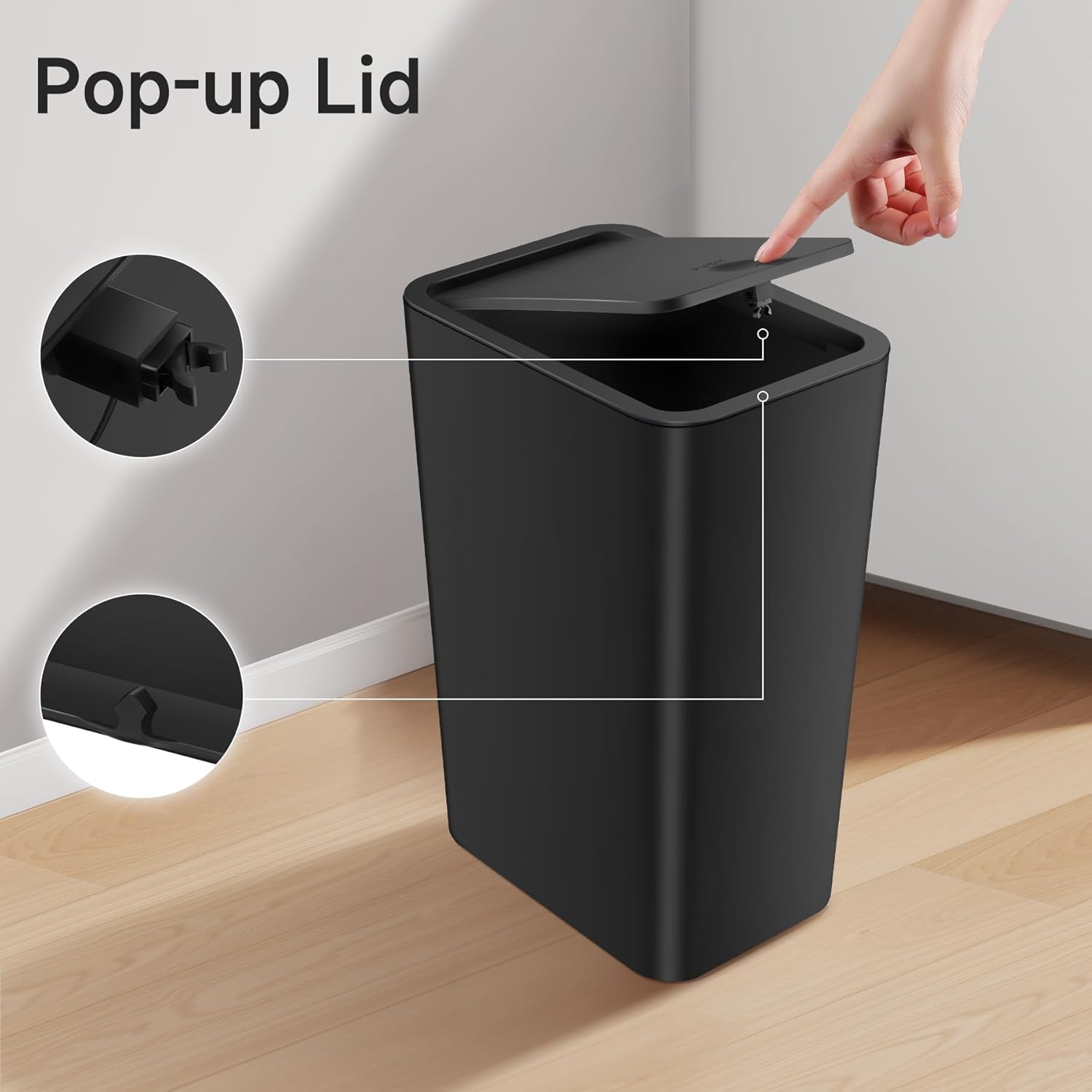 • Handy and Easy to Use: Adopt effortless pop-up lid. Lightly press the top to open, toss trash, press the top to close/latch. You will like the convenience of the lids that open and close so easily