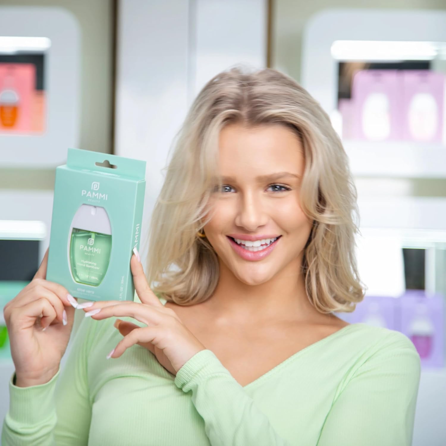 PAMMI Power Mist Hydrating Hand Sanitizer Spray, Portable Travel Size Pocket Hand Sanitizer, Scented Handsanitizer Mini Spray For Car - 600 Sprays (2 Pack (Aloevera, Peach))