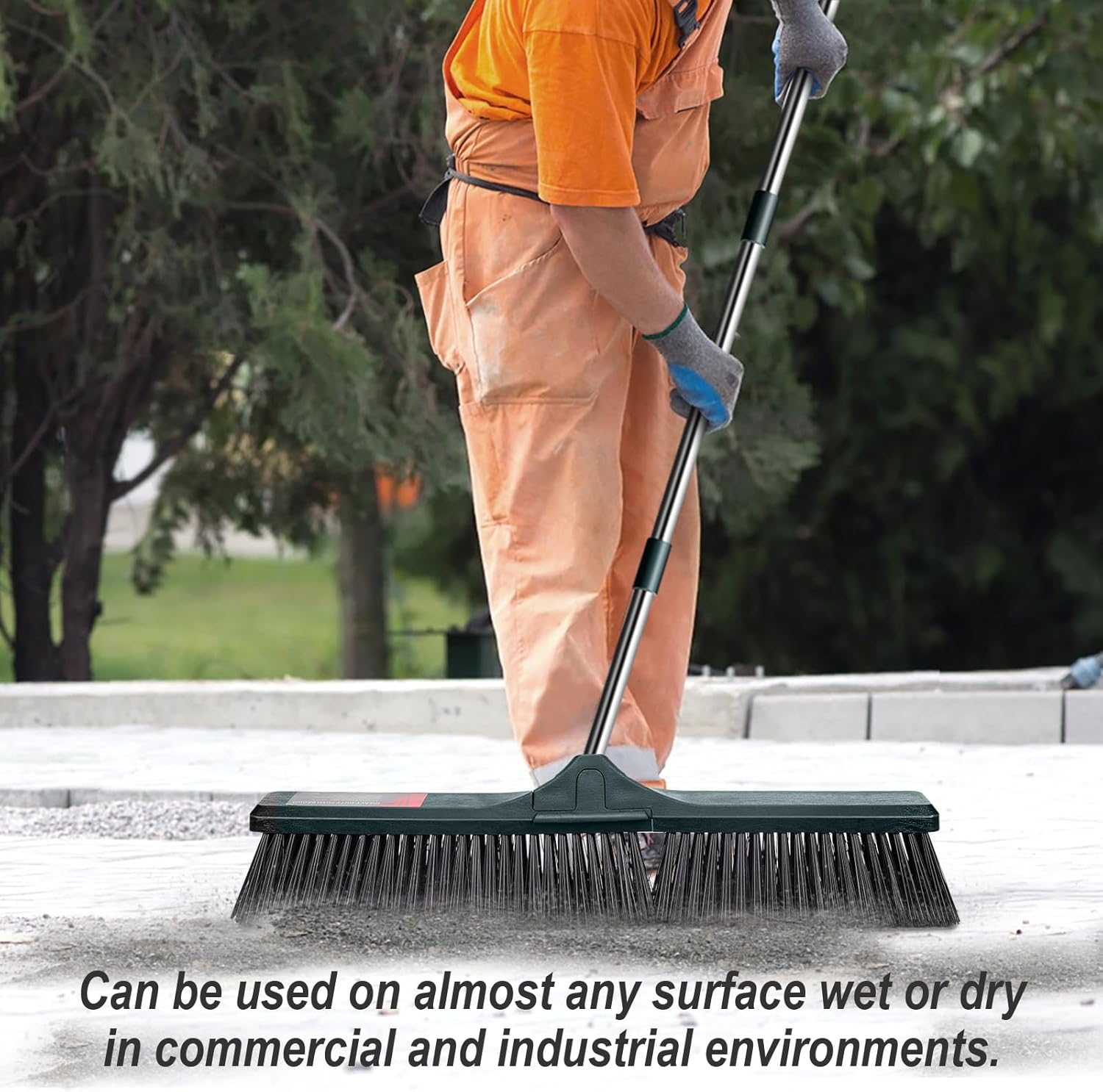 • 23.6" Wide Stiff Push Broom-The garden broom head with wider coverage, you can quickly clean the floor to save you time.The durable bristles for sweeping up fine dirt,grass, leaves,soil, sands, snow. These bristles resist bending to retain their shape over time.
