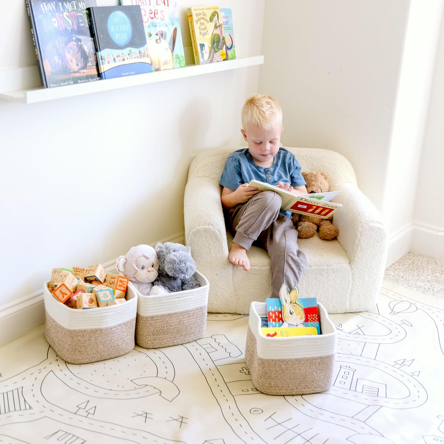 • Safe, Natural Cotton Organizer Bins: Crafted from the highest quality material in the market, our storage bins are oh-so-sturdy (and cute) and ready to take on little humans. They’re 100% safe, so you can rest easy if teething toddlers take a nibble.