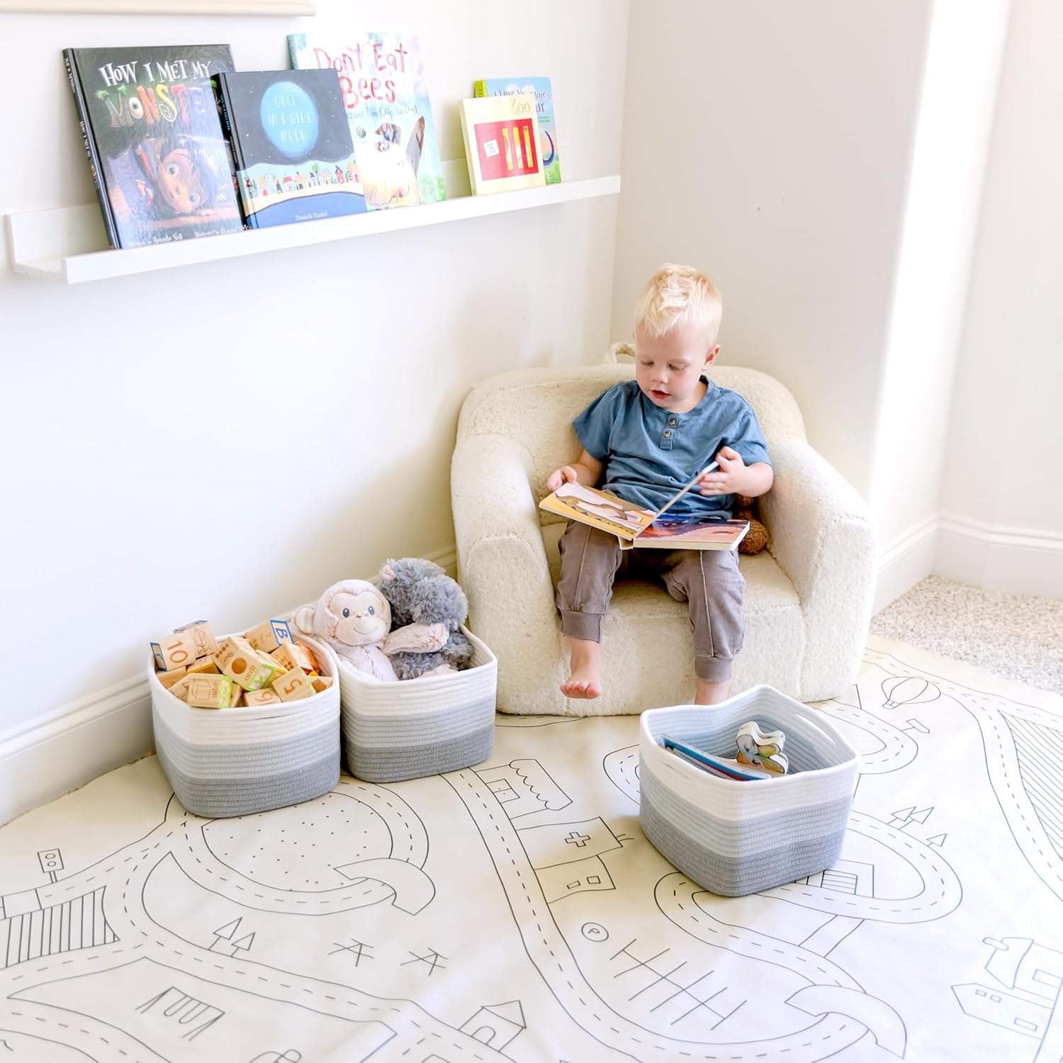 • Safe, Natural Cotton Organizer Bins: Crafted from the highest quality material in the market, our storage bins are oh-so-sturdy (and cute) and ready to take on little humans. They’re 100% safe, so you can rest easy if teething toddlers take a nibble.