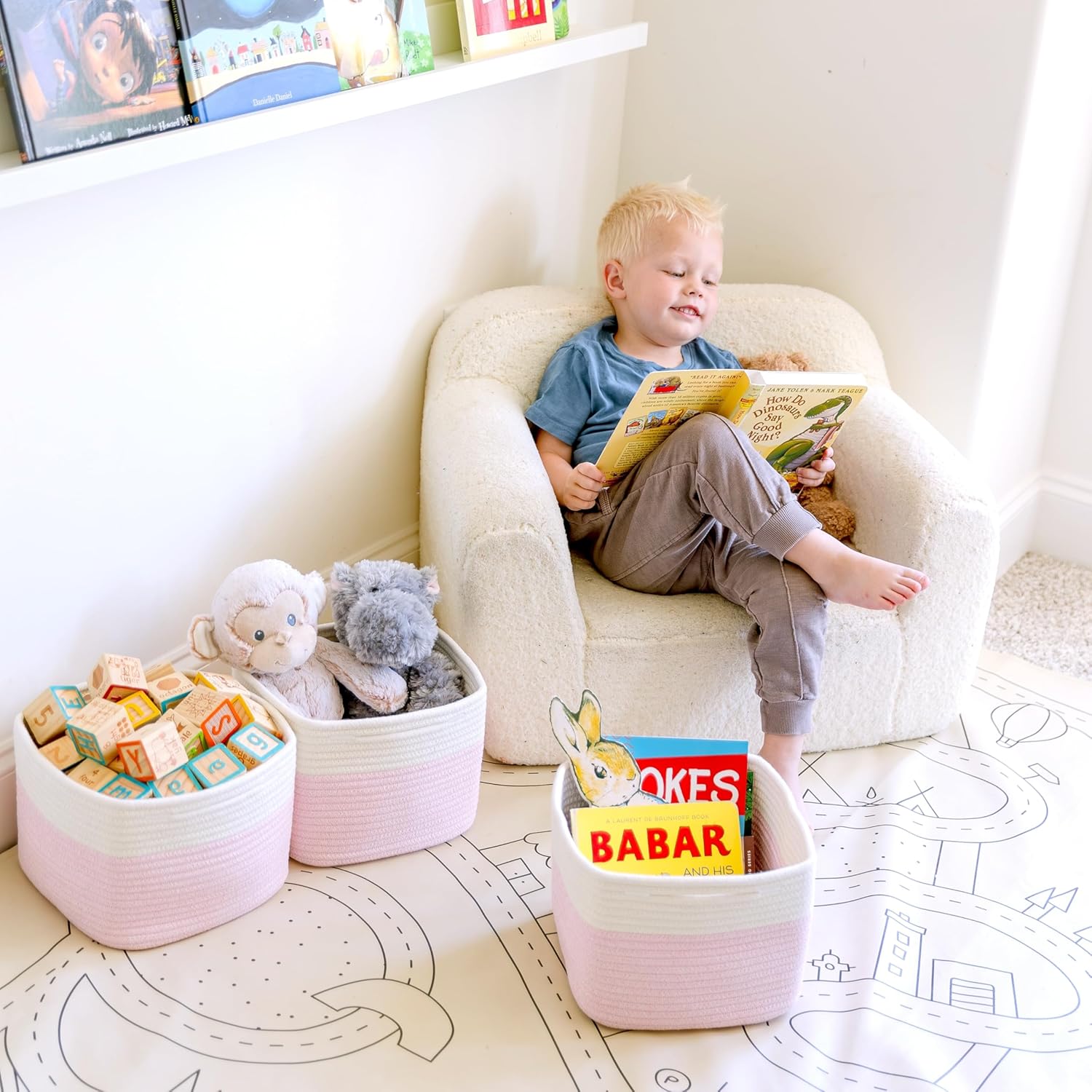 • Safe, Natural Cotton Organizer Bins: Crafted from the highest quality material in the market, our storage bins are oh-so-sturdy (and cute) and ready to take on little humans. They’re 100% safe, so you can rest easy if teething toddlers take a nibble.
