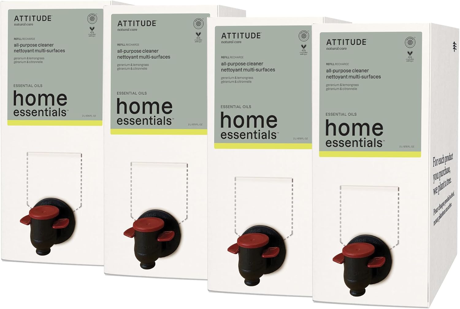 ATTITUDE Multi-Purpose Cleaner with Essential Oils, EWG Verified, Plant and Mineral-Based Ingredients, Vegan Household Products, Bulk Refill, Geranium and Lemongrass, 67.6 Fl Oz (Pack of 4)