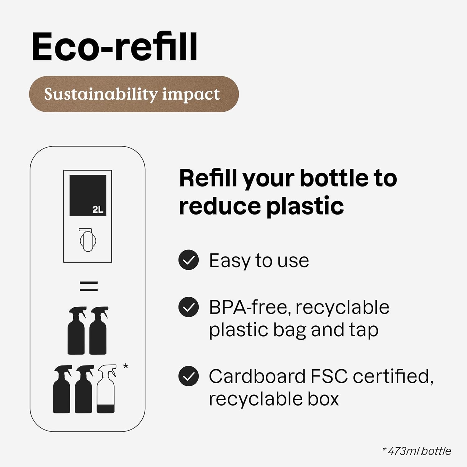 • GOOD FOR THE PLANET: Eco-refills are easy to carry and to use from the comfort of your home; ideal to refill our aluminum bottle infinitely