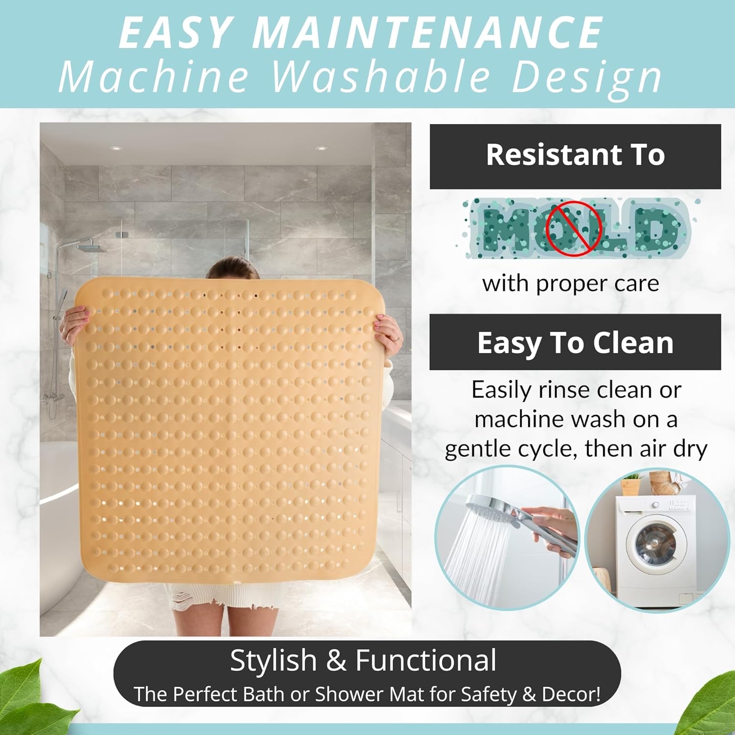 ENKOSI Extra Large Square Non Slip Shower Mat - 31 x 31-inch XL Bathroom Shower Mat - Square Shower Mats for Shower Stall Floors | Secure Suction Cups and Drain Holes (31x31 Beige Opaque)