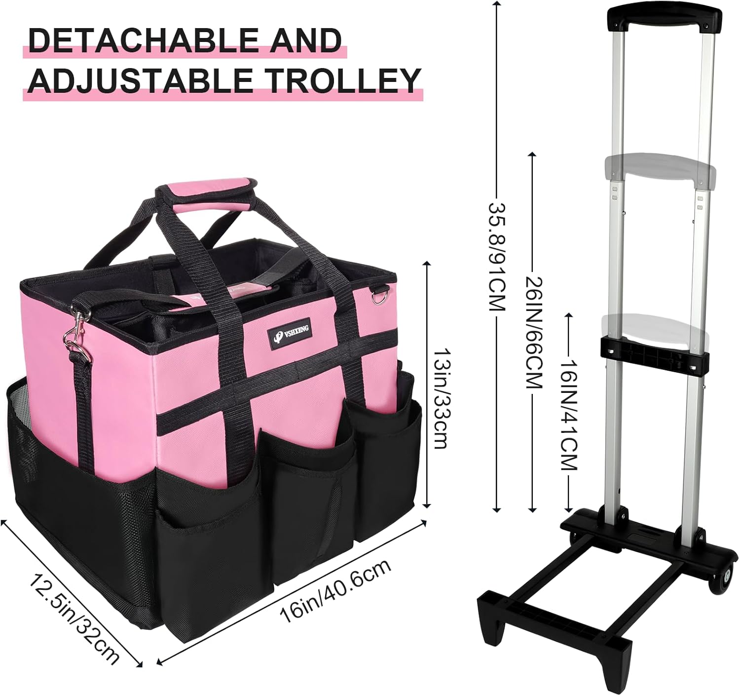 • Detachable Trolley: The trolley can be easily detached, transforming the caddy into a portable bag for versatile use.