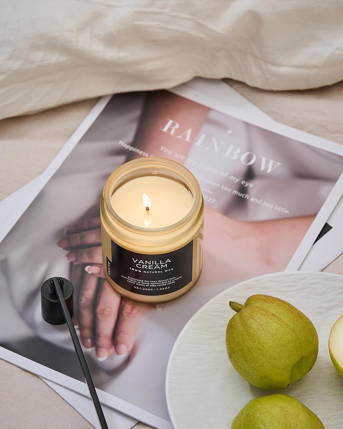 M&SENSE Vanilla Candles 100% Natural Organic Soy Wax Relaxing Aromatherapy Scented Candle, 7.05oz 50 Hours Burning Time Non Toxic Housewarming Gifts for Women and Men