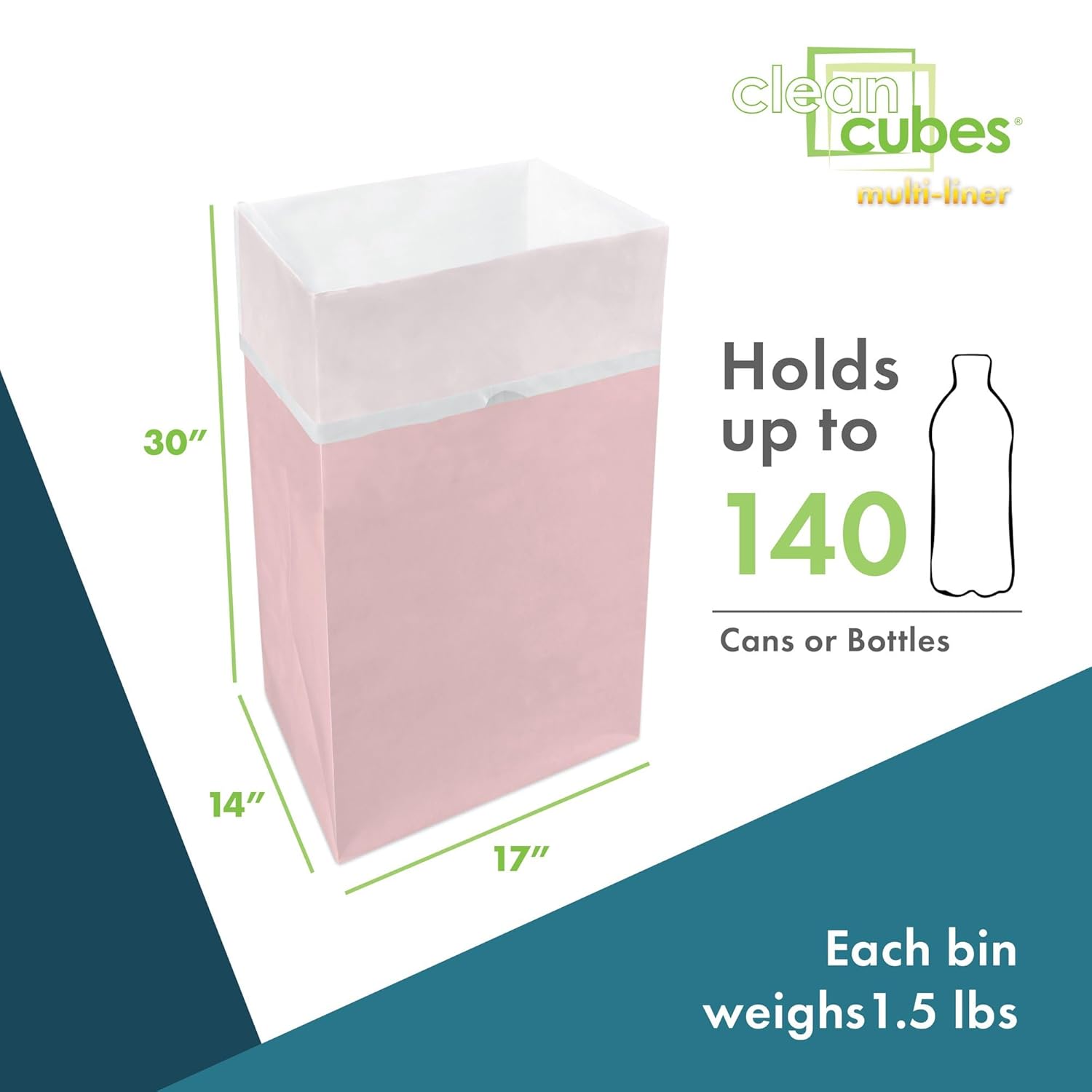 • ✅【VALUE 3-PACK】Includes 3 Clean Cubes per package — each bin comes with 3 custom-fitted trash liners. 30-gallon capacity (17” x 14” x 30”).