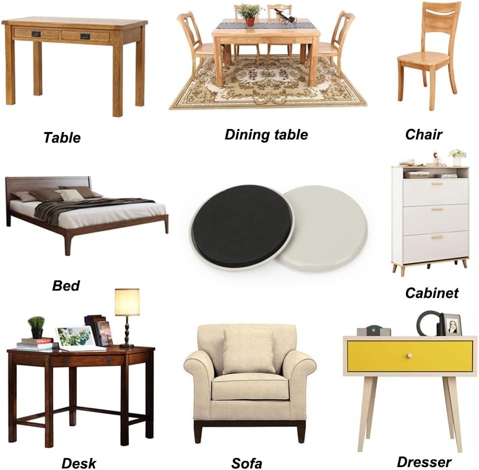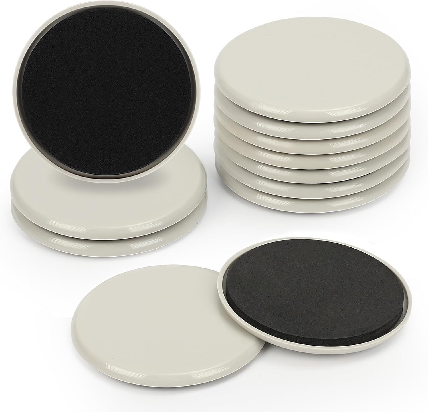 • ★SET OF 12 - There are 12pcs 3-1/2 inches (9cm) diameter round furniture slider movers in a pack, which can be used for 3 furniture