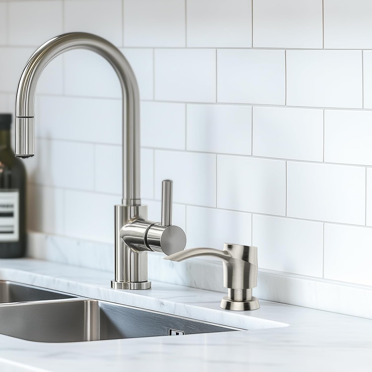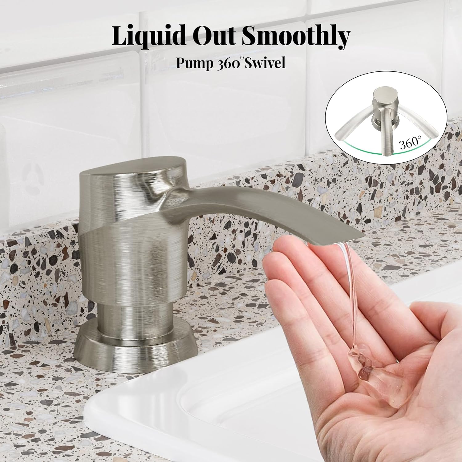 • 360° Swivel Pump:SAMODRA sink soap dispenser pump is 360° swivel,which is save up rooms. The morden appearance design makes your kitchen looks more tidy and bright!