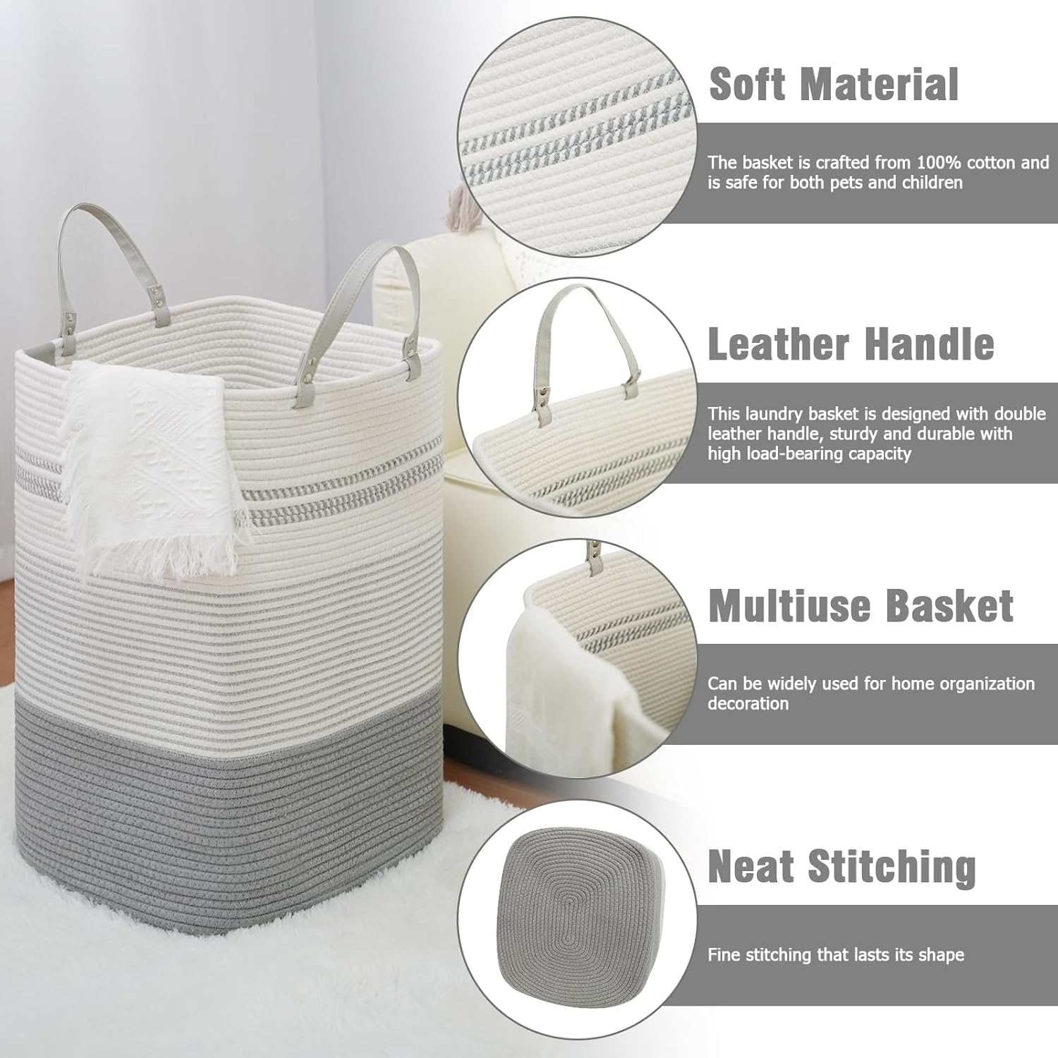 • Large Capacity & Versatile: With a capacity of up to 75 L/100 L, this rectangle fabric laundry basket holds a week’s worth of laundry, towels, or blankets. Tall woven cotton basket versatile design allows it to be used for toys, craft supplies, or seasonal items