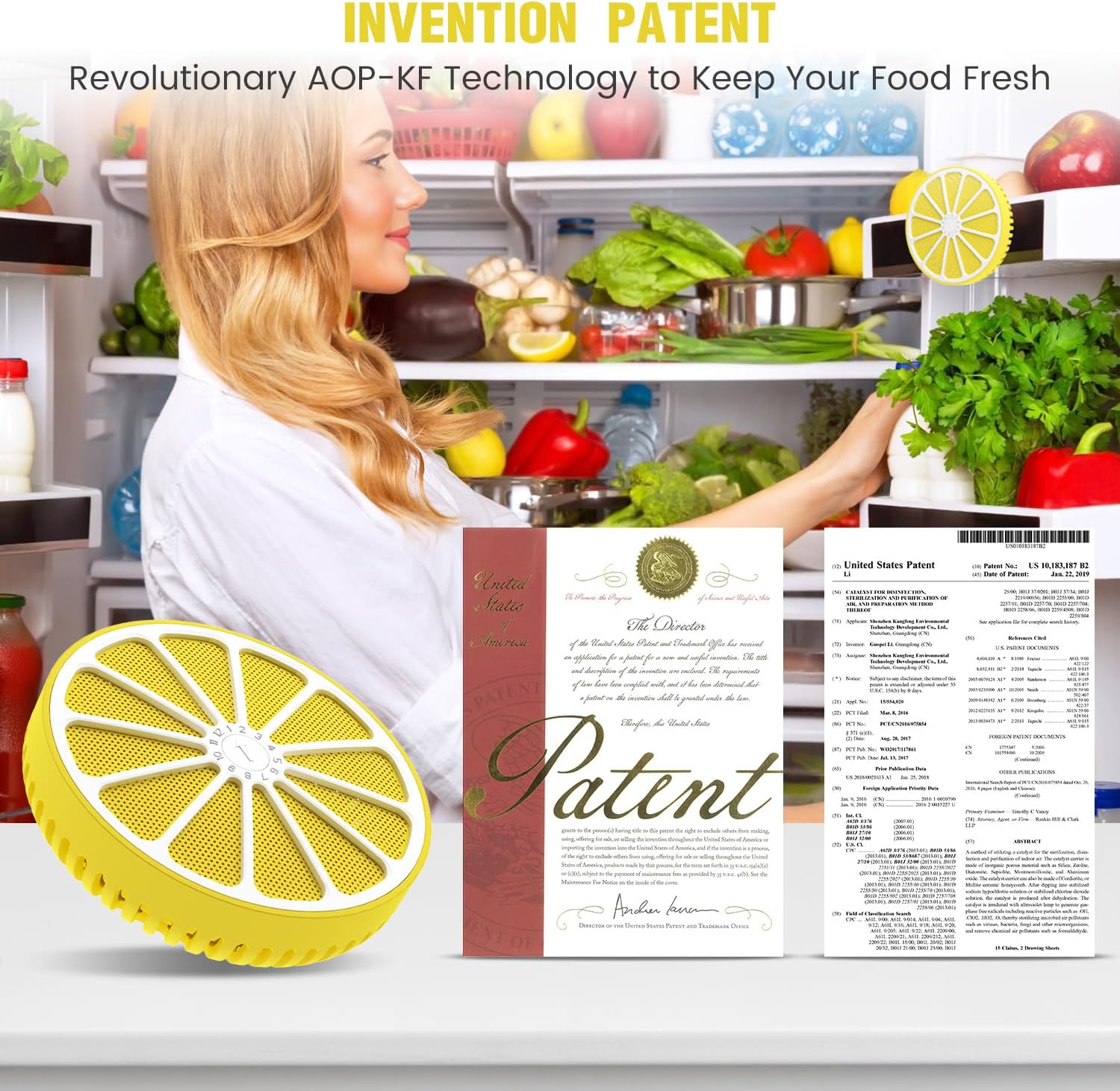 Refrigerator Deodorizer for Kitchen & Small Spaces, 2 Years Fresh Odor Eliminator for Fridge with AOP-KF Solid Alkali Tech, Lemon Design & Adjustable Clip Design (2.7"/50g)