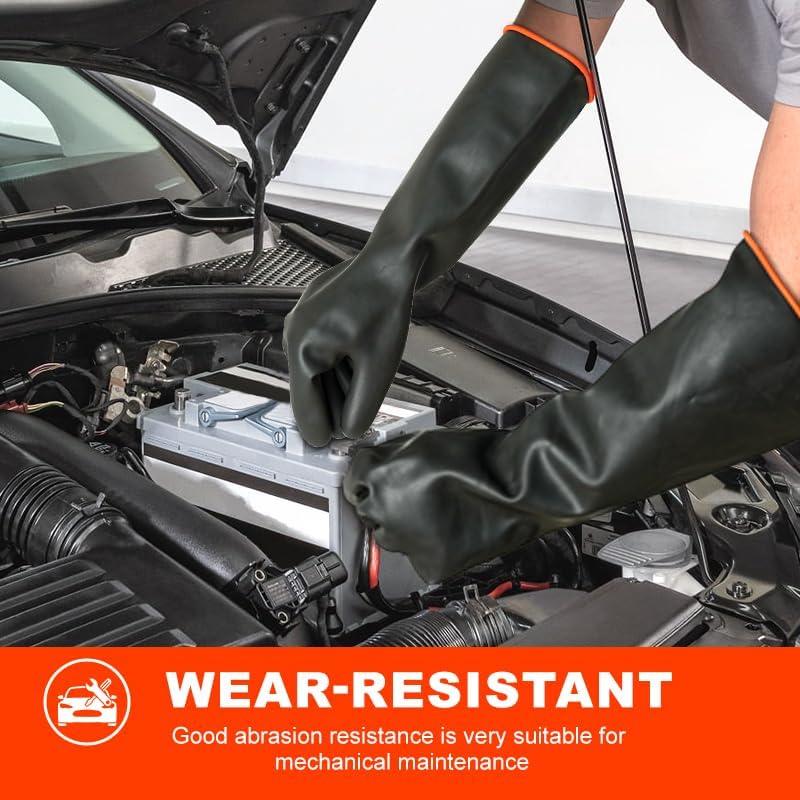 - Multiple Length Options:Available in 14", 18", and 22" lengths to suit various applications, providing tailored protection for forearms, elbows, and full arms., our oversized rubber gloves feature extended cuffs that shield your wrists and forearms from splashes, abrasives, and hazardous chemicals. Designed to accommodate various hand sizes, these gloves offer an exceptional fit while providing comfort and heat resistance for prolonged use.