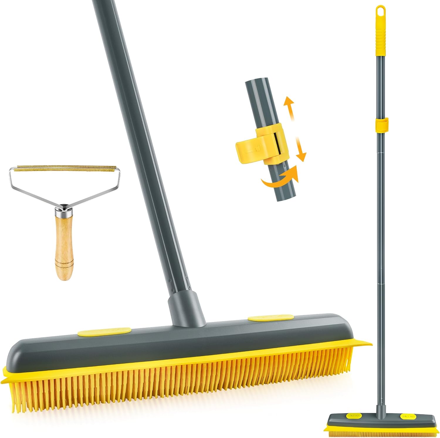 • Extended Reach with Long Handle: The 57.5” adjustable handle of this rubber brush for pet hair reduces bending and kneeling, making it ideal for tackling high corners, baseboards, or under furniture with ease