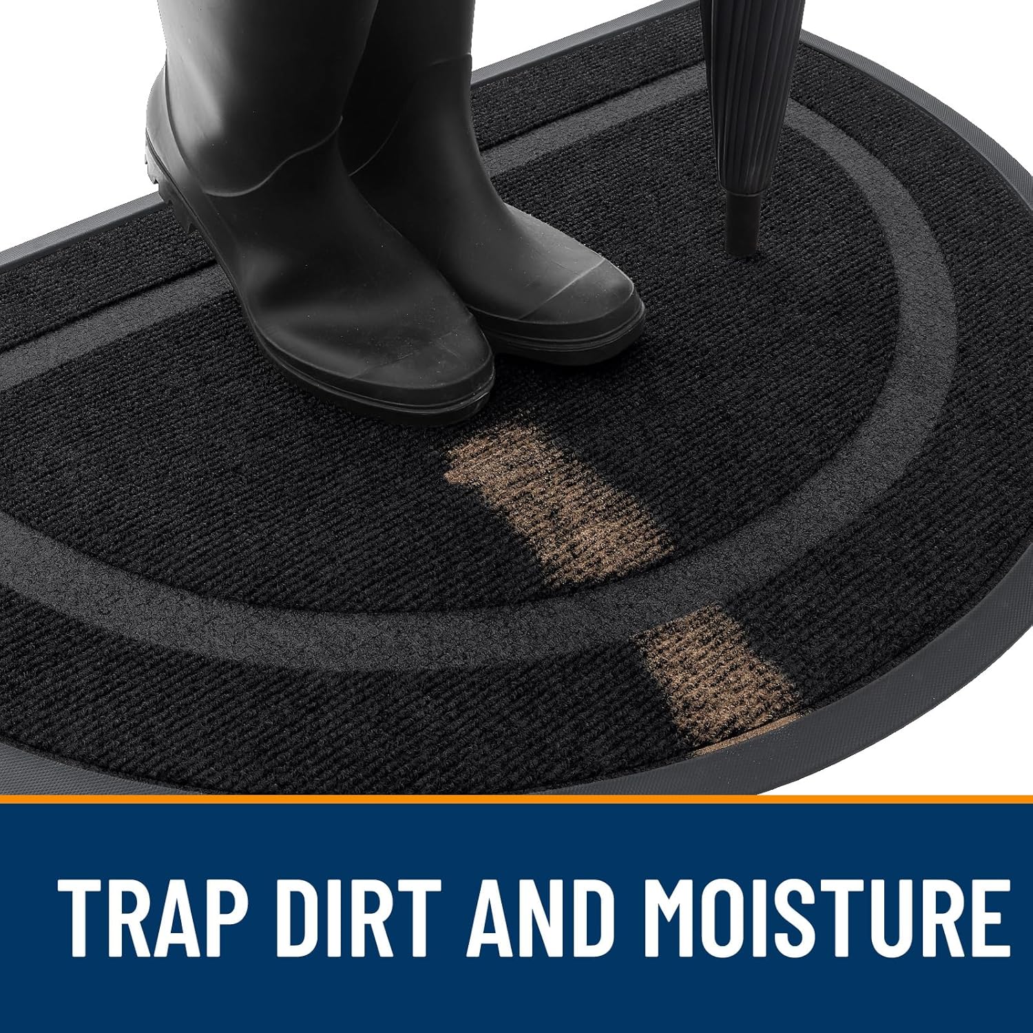 OLANLY Half Circle Door Mat Indoor Outdoor Entrance Welcome, Waterproof All-Season, All-Weather Doormat, Sturdy Natural Rubber, Low Profile, Easy Clean Patio Porch Entryway Mat, 59x35, Black