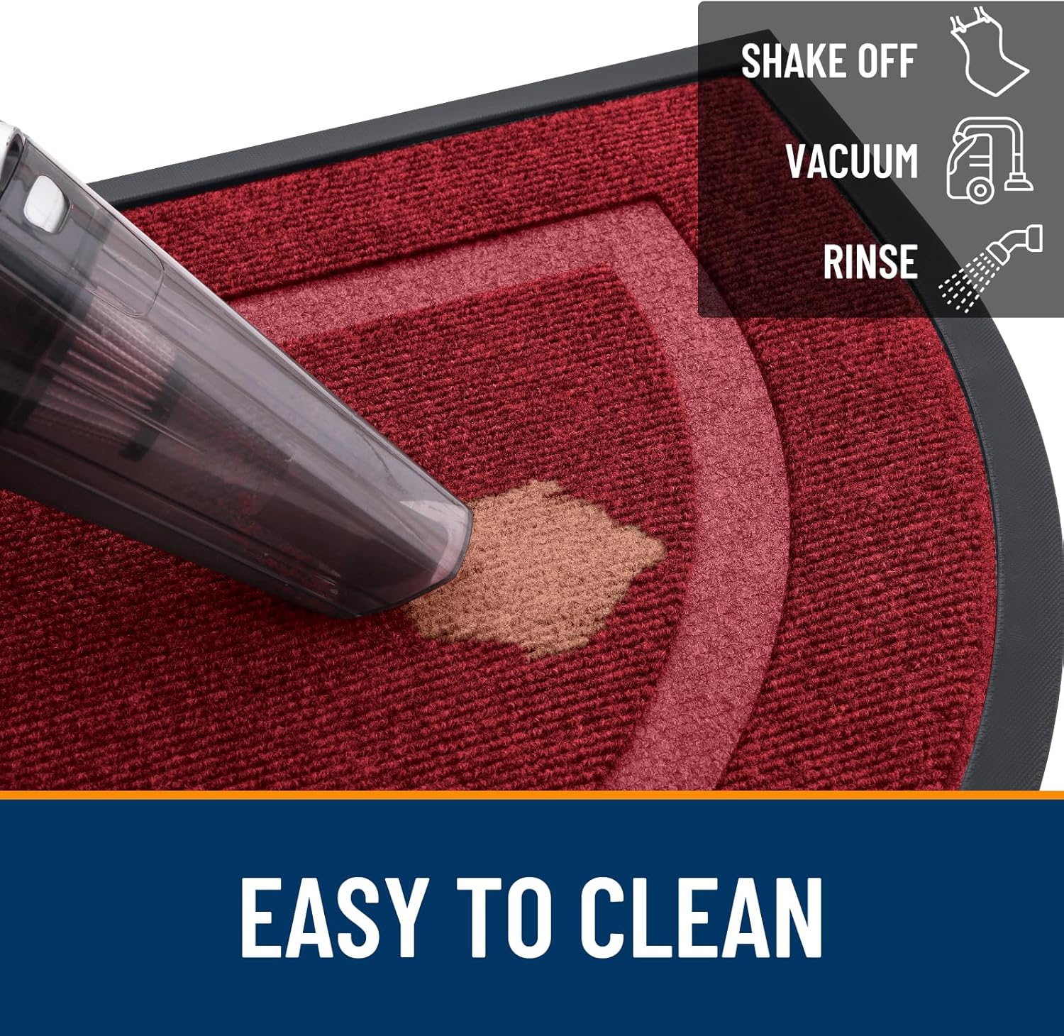 OLANLY Half Circle Door Mat Indoor Outdoor Entrance Welcome, Waterproof All-Season, All-Weather Doormat, Sturdy Natural Rubber, Low Profile, Easy Clean Patio Porch Entryway Mat, 47x32, Wine Red