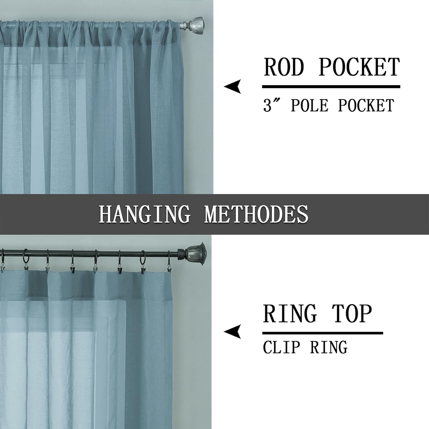 • Rich Material: These faux linen sheer curtains are crafted from high quality durable polyester fabric, which provides a soft and luxurious touch while add an airy and dreamy beauty to your room.