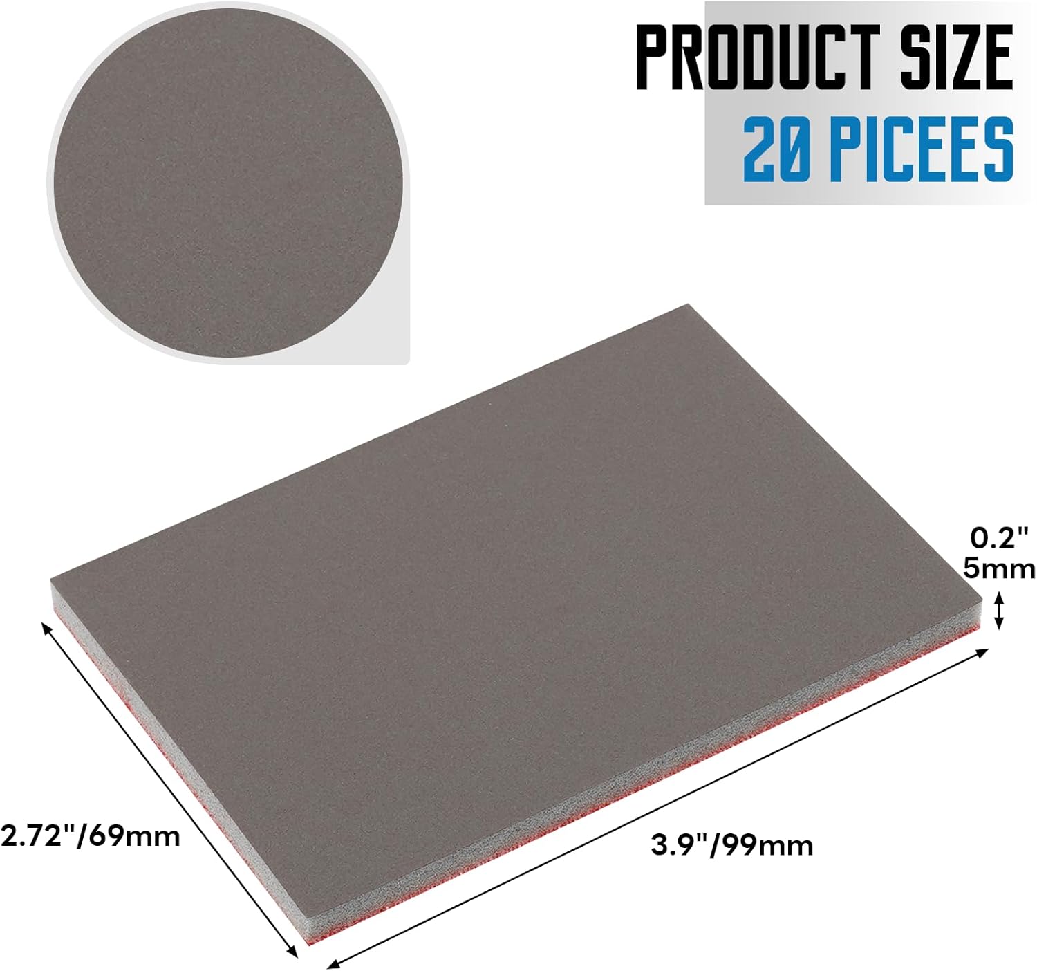 • Package Includes: 20 x 2000 grit sanding sponge, length: 3.9"/99mm, width: 2.72"/69mm, you can cut it into the desired size and shape according to your needs.