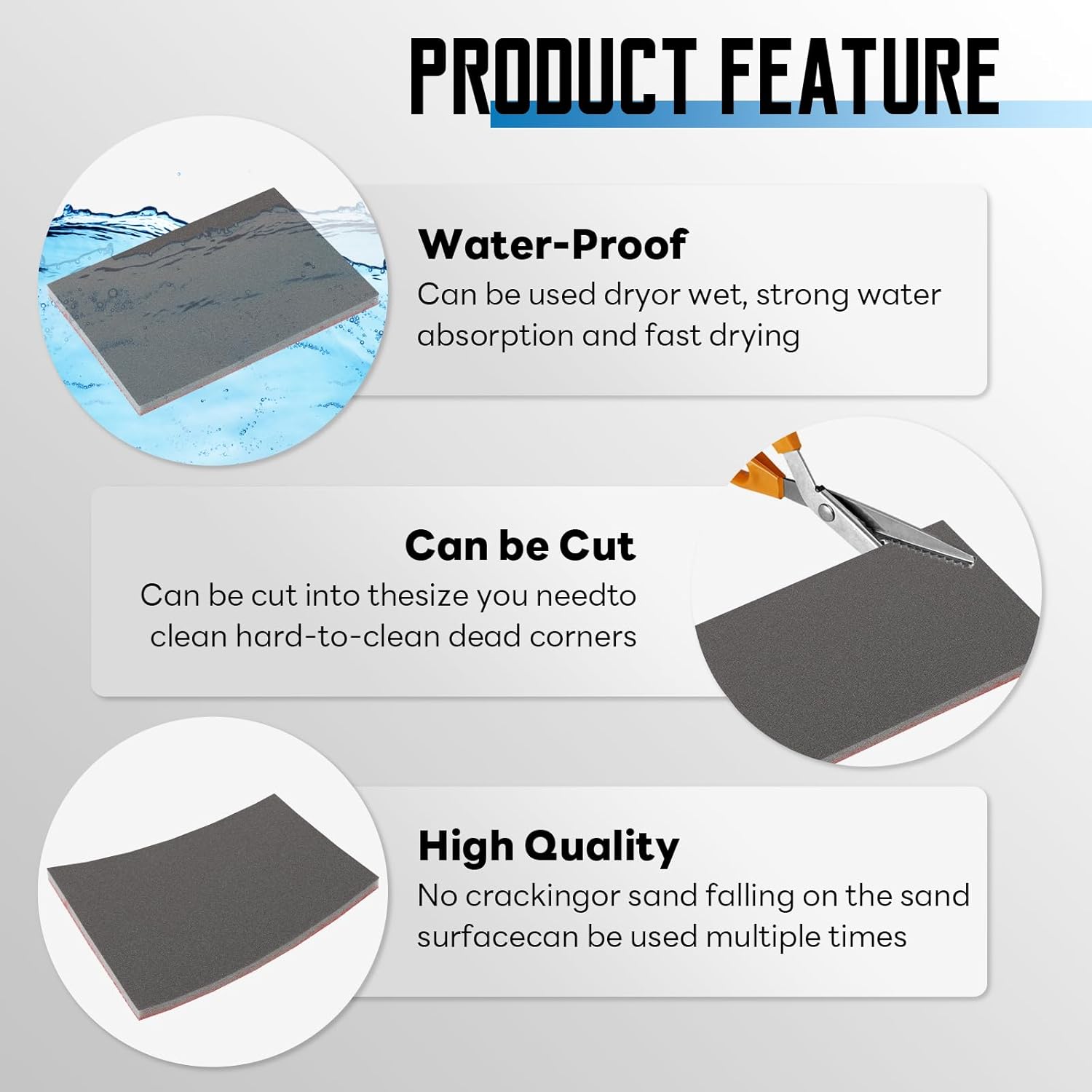 • Product Material: Foam sanding pads are made of alumina and sponge, with full sand and gravel, not easy to sand off, strong grinding force, and easy polishing.