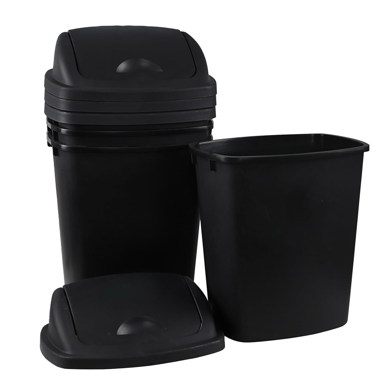 • Total 4 pack 6 gollon black garbage bins with swing lid