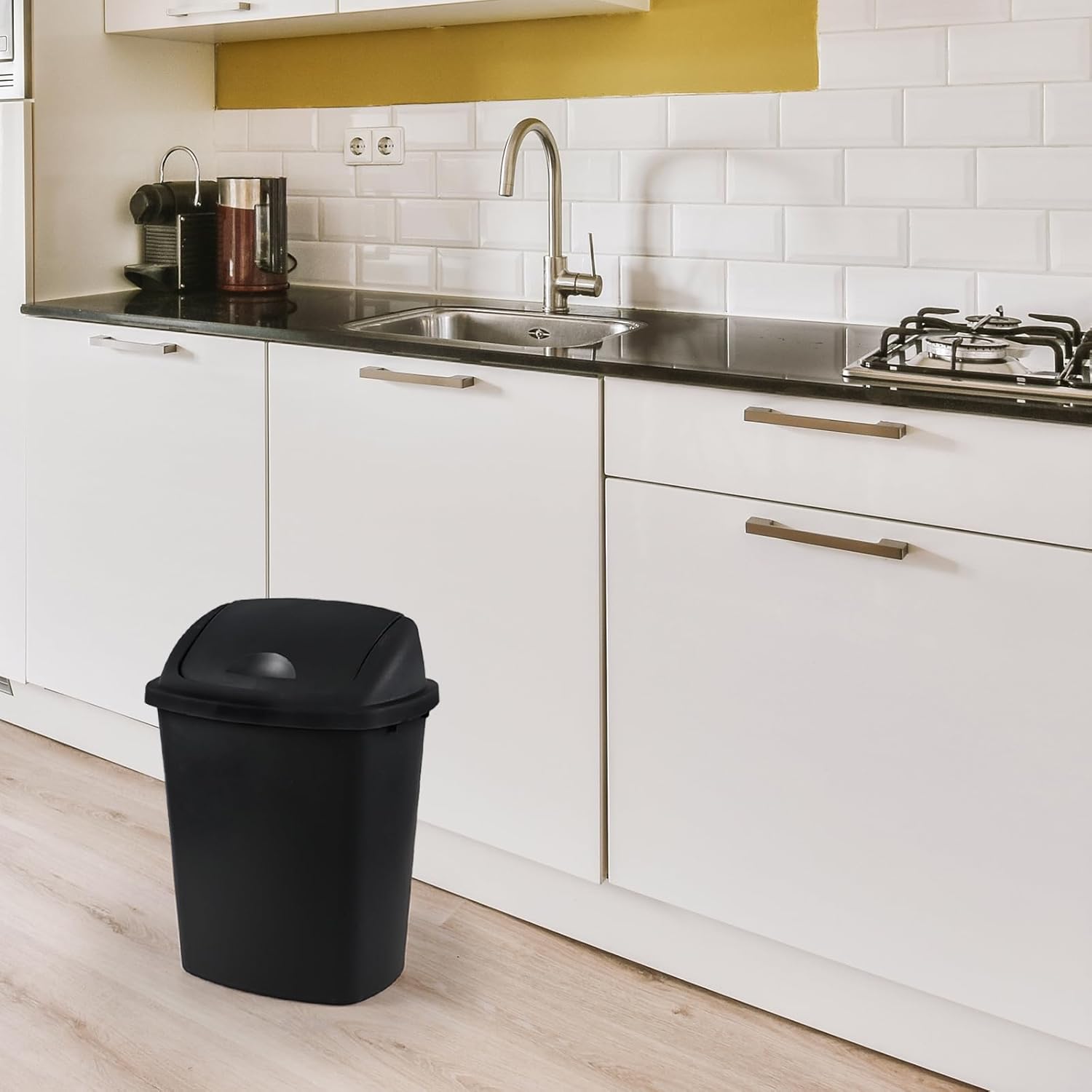 • Can be used as a kitchen trash can, bathroom trash can, office trash can, hallway trash can, etc.