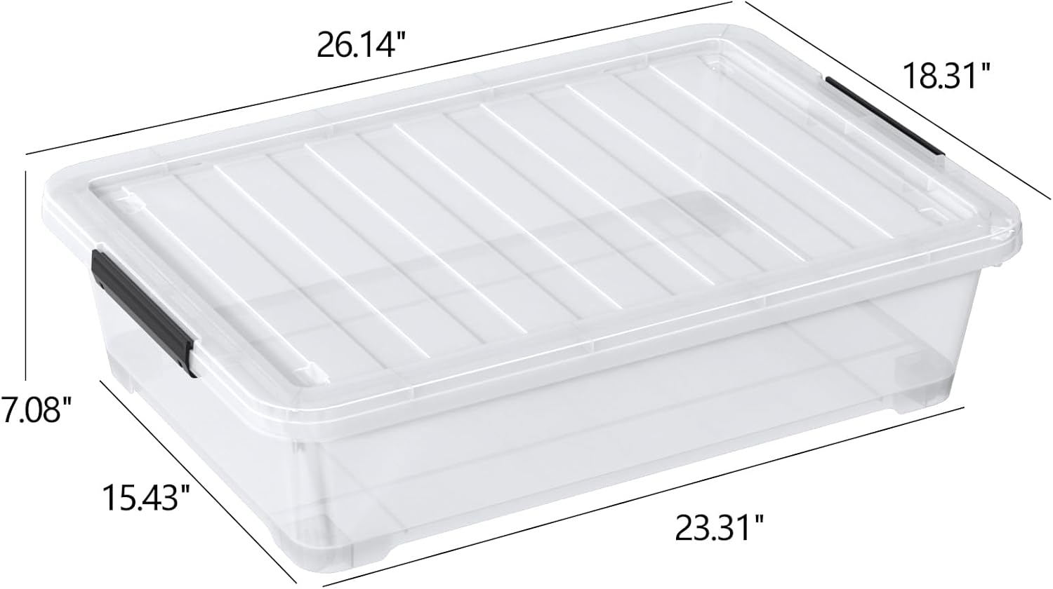 40 Quart Under Bed Plastic Storage Bins with Wheels, 3 Packs Clear Large Storage Container Box with Lids