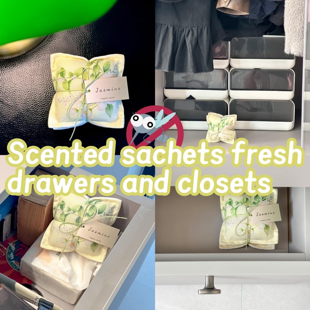 AUCUDA Mother's Day Jasmine Scented Sachet Bags for Drawers and Closets Decorations, Potpourri Packets for Women Clothes Storage, Spring Wedding Fragrance Pillow, Bedroom Indoor Fresheners.