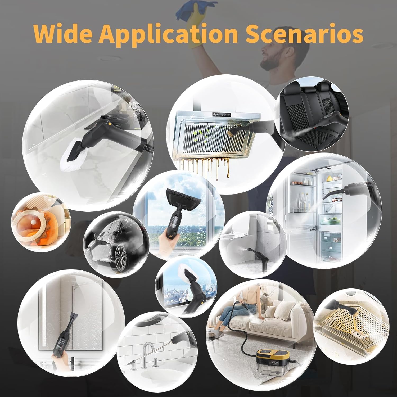 • 【High-pressure steamer】Rapidly heating up within 10 seconds, the temperature can reach 221°F/105°C and the steam pressure reaches 3 Bar.strong steam power for deep and effective cleaning,effectively remove stubborn greasy dirt and stains.