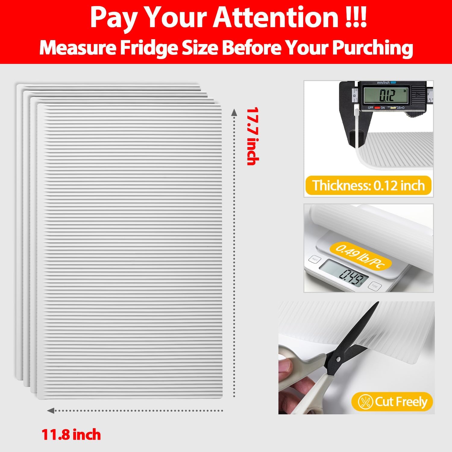 • Safety Material: Made of 100% food-grade silicone, BPA-free, non-toxic, no fading, highlights is that we have added the anti-slip Stripped texture to strengthen friction, to protect it against annoying spills, drips and food stuck on your fridge shelves, saving you the time and effort you spend cleaning your fridge.