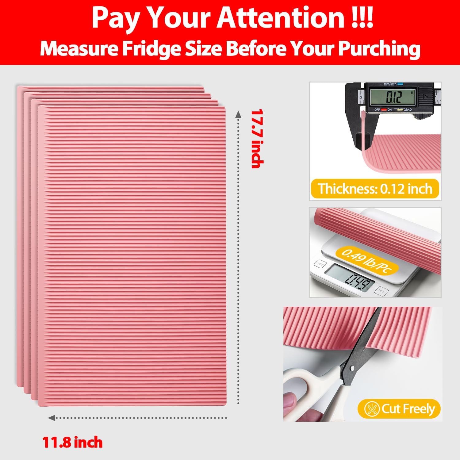 • Safety Material: Made of 100% food-grade silicone, BPA-free, non-toxic, no fading, highlights is that we have added the anti-slip Stripped texture to strengthen friction, to protect it against annoying spills, drips and food stuck on your fridge shelves, saving you the time and effort you spend cleaning your fridge.