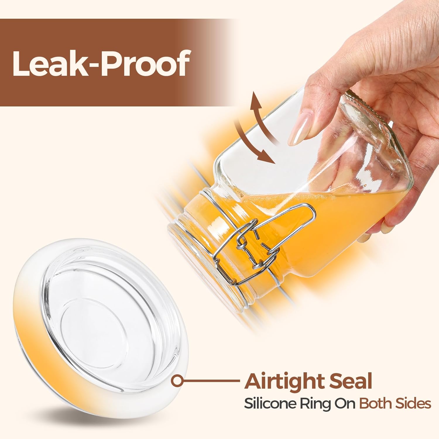 • Leak-Proof Small Jars: These food-grade canning jars 8 oz feature silicone gaskets and stainless steel clips for airtight sealing. Ideal for keeping food fresh for storing liquids like dressings, sauces, jam and soups