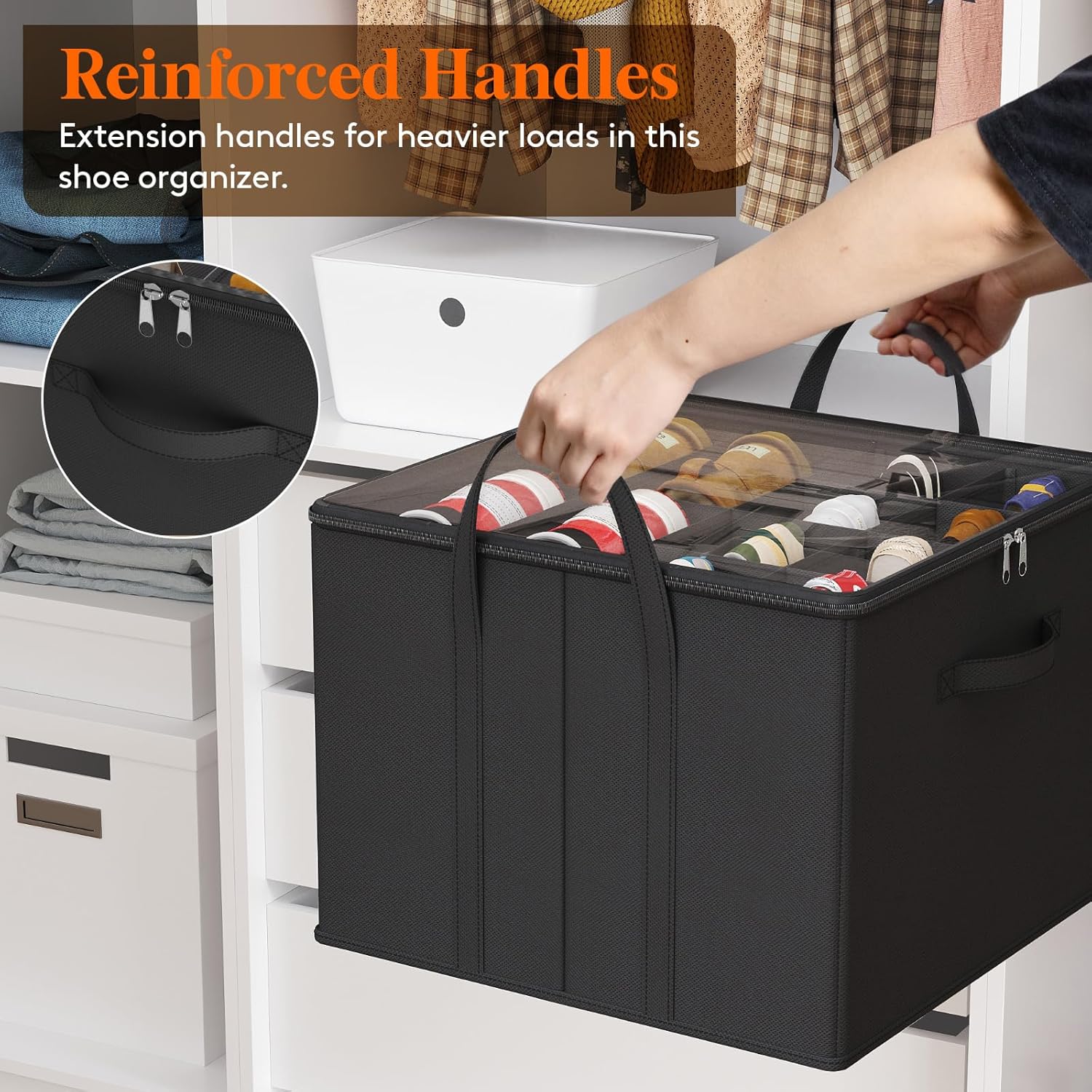 • Easy to Access: Featuring a transparent dust cover, this shoe storage organizer ensures easy identification and protection of your shoes. The durable double-sided zipper allows for smooth opening and closing, making it convenient to retrieve or store shoes.