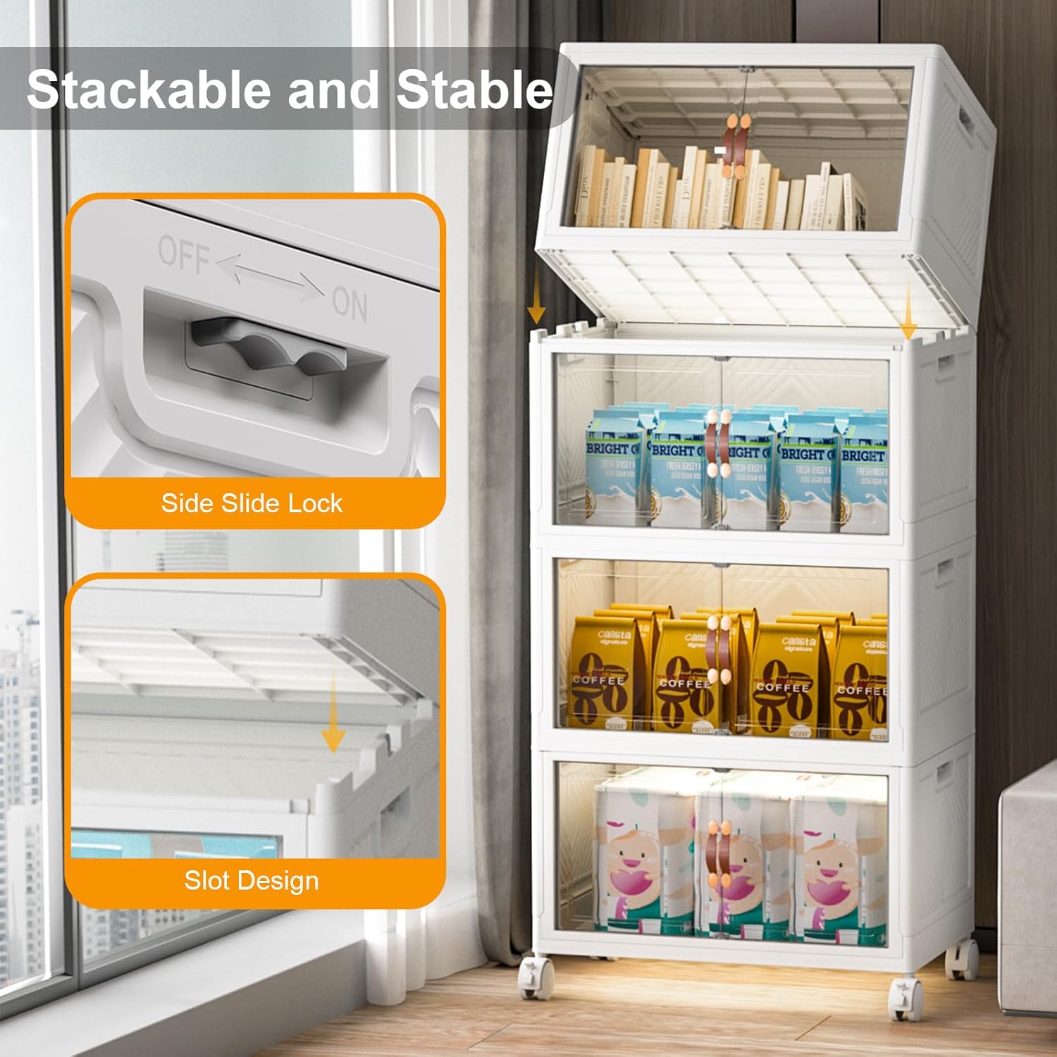 Extra Large Stackable Storage Bins with Lids & Wheels & Door, 448QT-112QT/28GAL*4Pack Foldable Collapsible Closet Organizers, Plastic containers drawers for bedroom Dorm