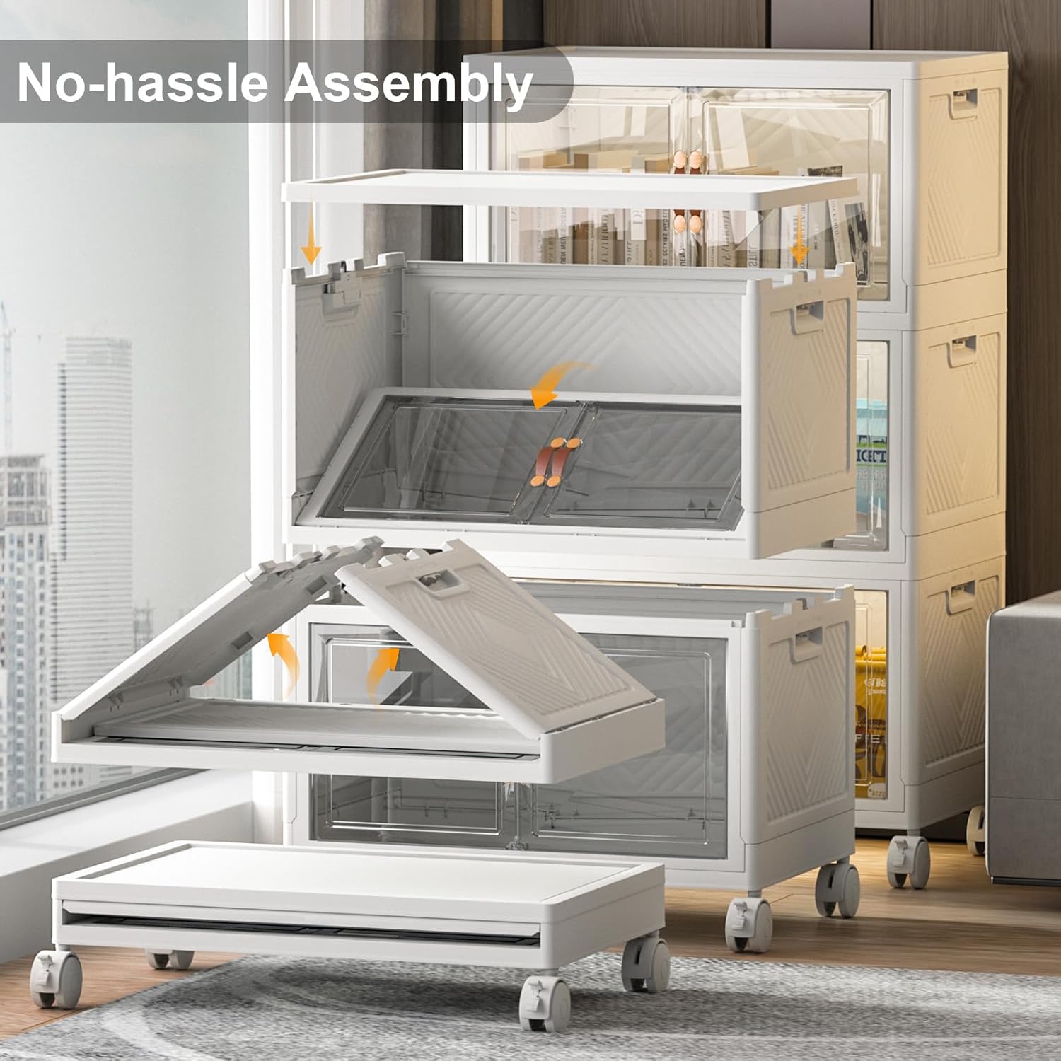• 【Smooth Mobility with Locking Wheels】: Easily move your storage wherever you need it. These stackable storage bins with wheels feature four smooth-rolling casters, including two locking brakes, keeping your bins stable yet mobile — great for bedrooms, dorms, or offices.