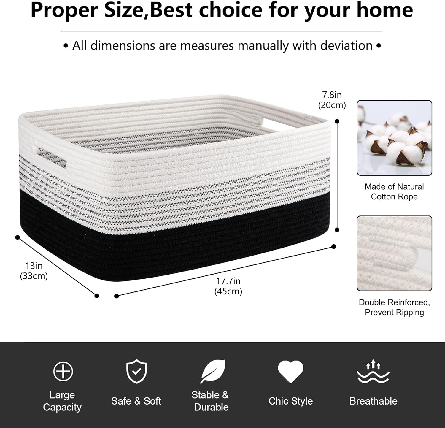 • Soft and Durable: Hand-stitched from high-quality natural cotton rope. Our baskets are very soft and baby-friendly. Seamless design, with no odor or sharp edges, not easy to tear, Great for nurseries storage and closet organization