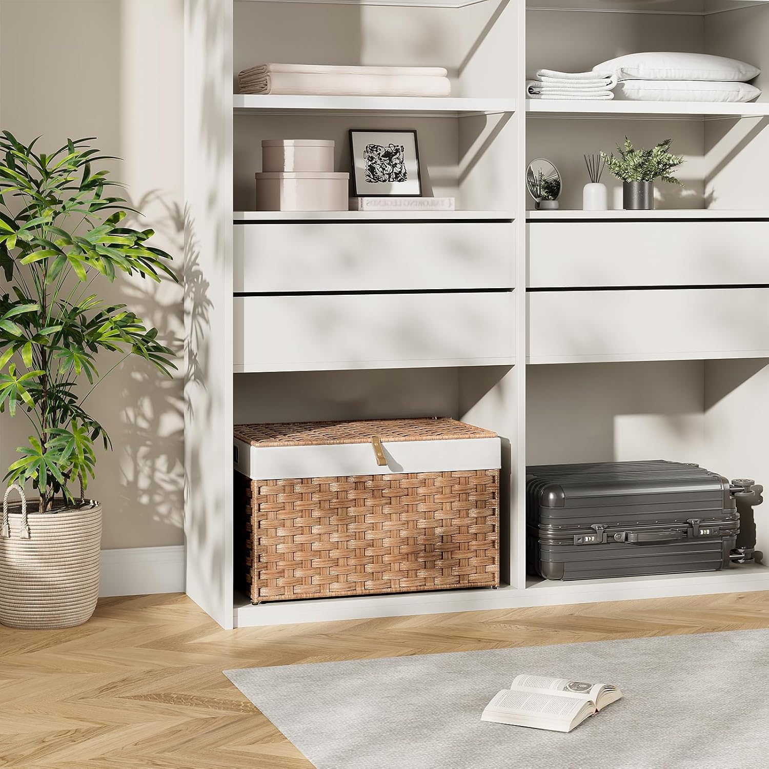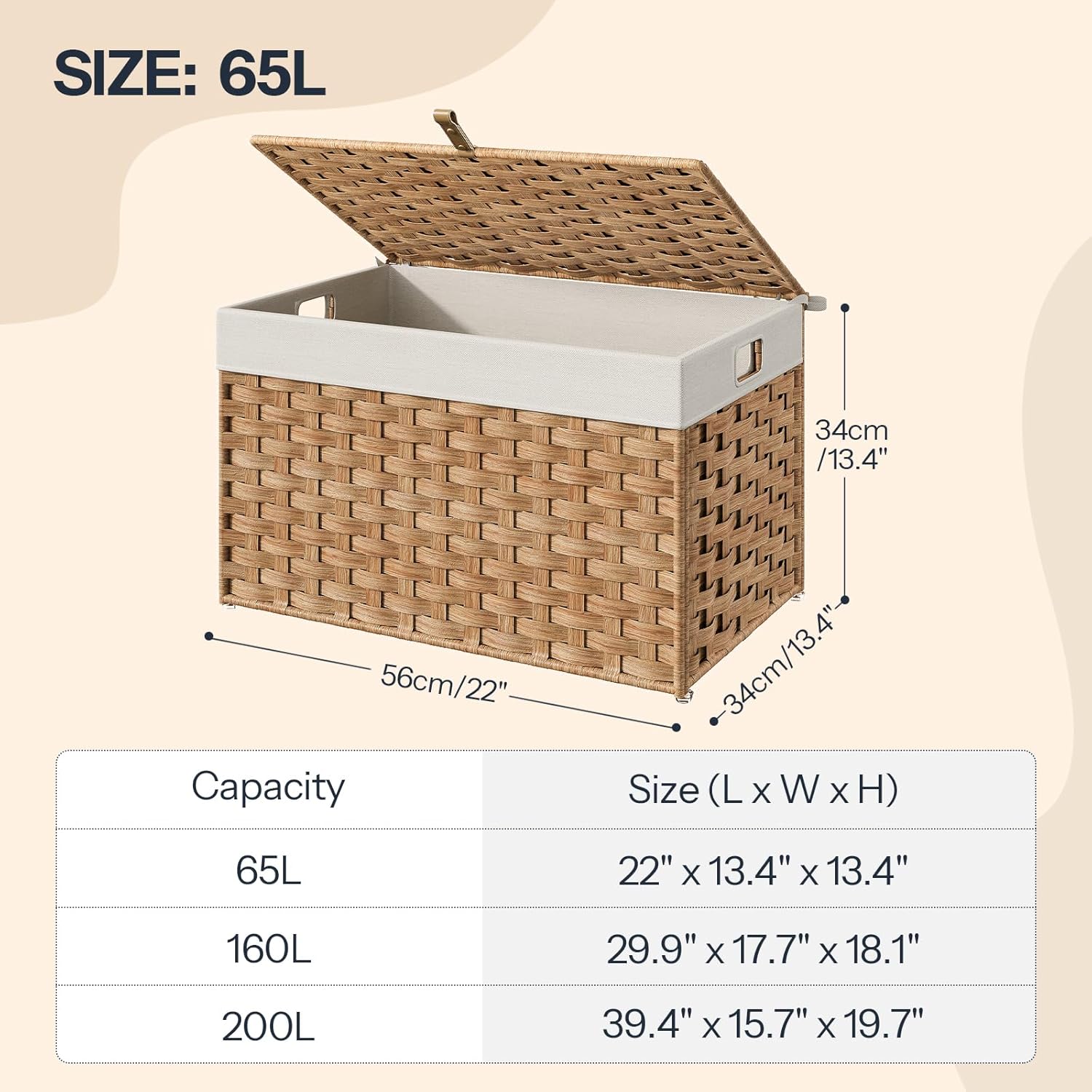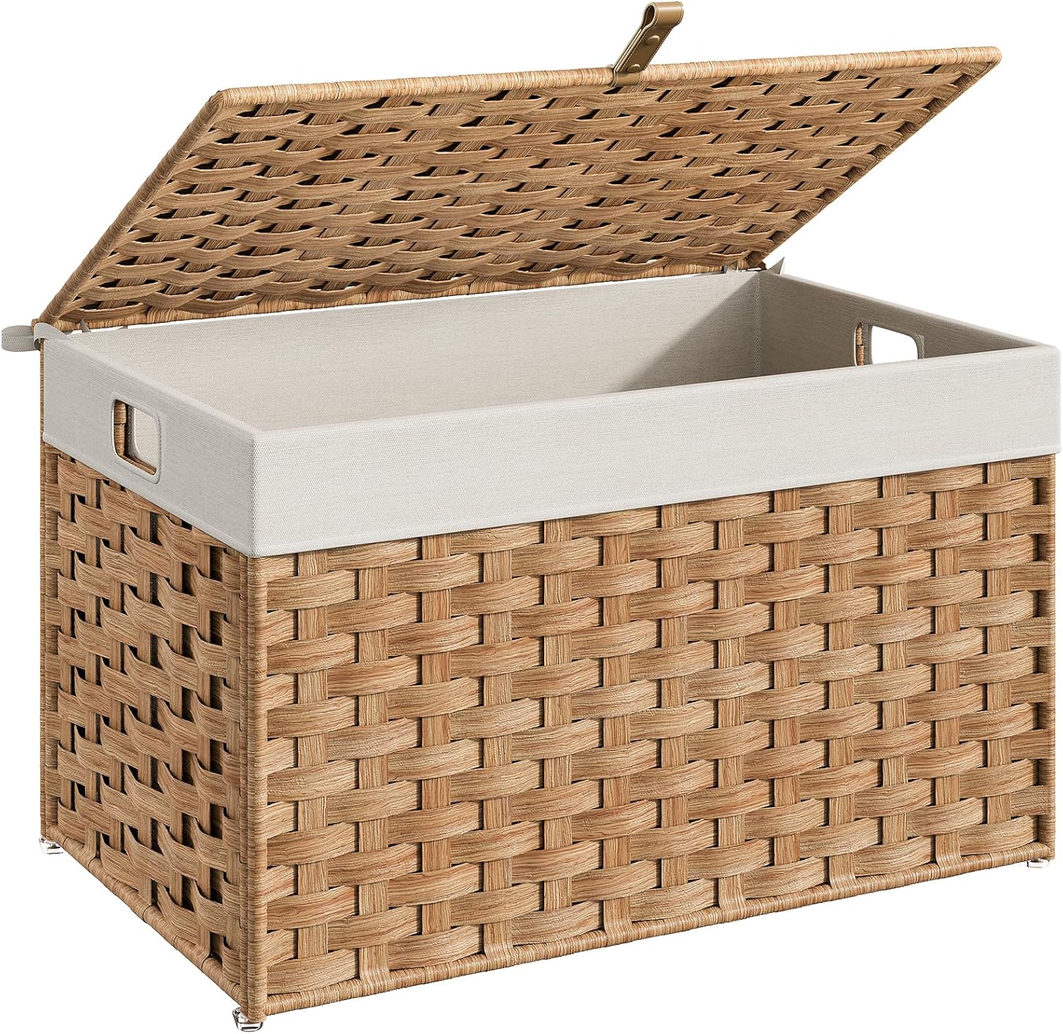 • Ultra-Spacious Storage: This 65L storage basket is a clutter-buster for bedrooms, etc. Its full-open lid lets you swiftly grab or stash clothes and blankets. No more messy chaos; it turns your space into a neat, organized haven