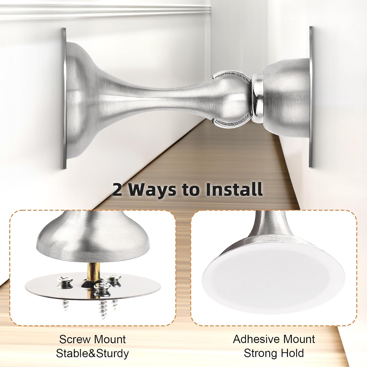 Probrico Brushed Nickel Magnetic Door Stoppers for Bottom of Door, Stainless Steel Magnet Door Catch Door Stops to Keep Door Open, Heavy Duty Door Holder, Wall and Floor Mounting, 2 Pack