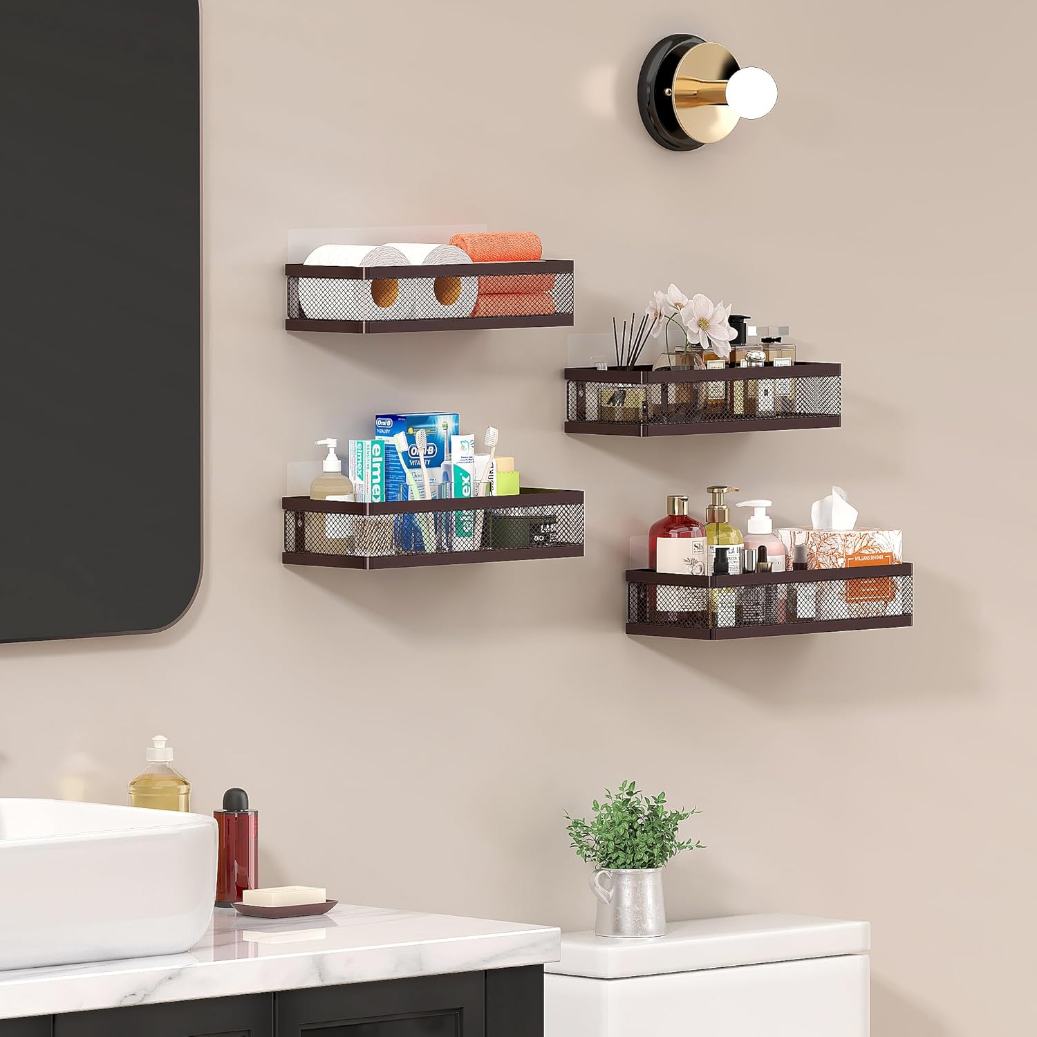 - Included Components : 2 baskets, 2 traceless sticker, 4 hooks, 4 screws, 4 wall stoppers