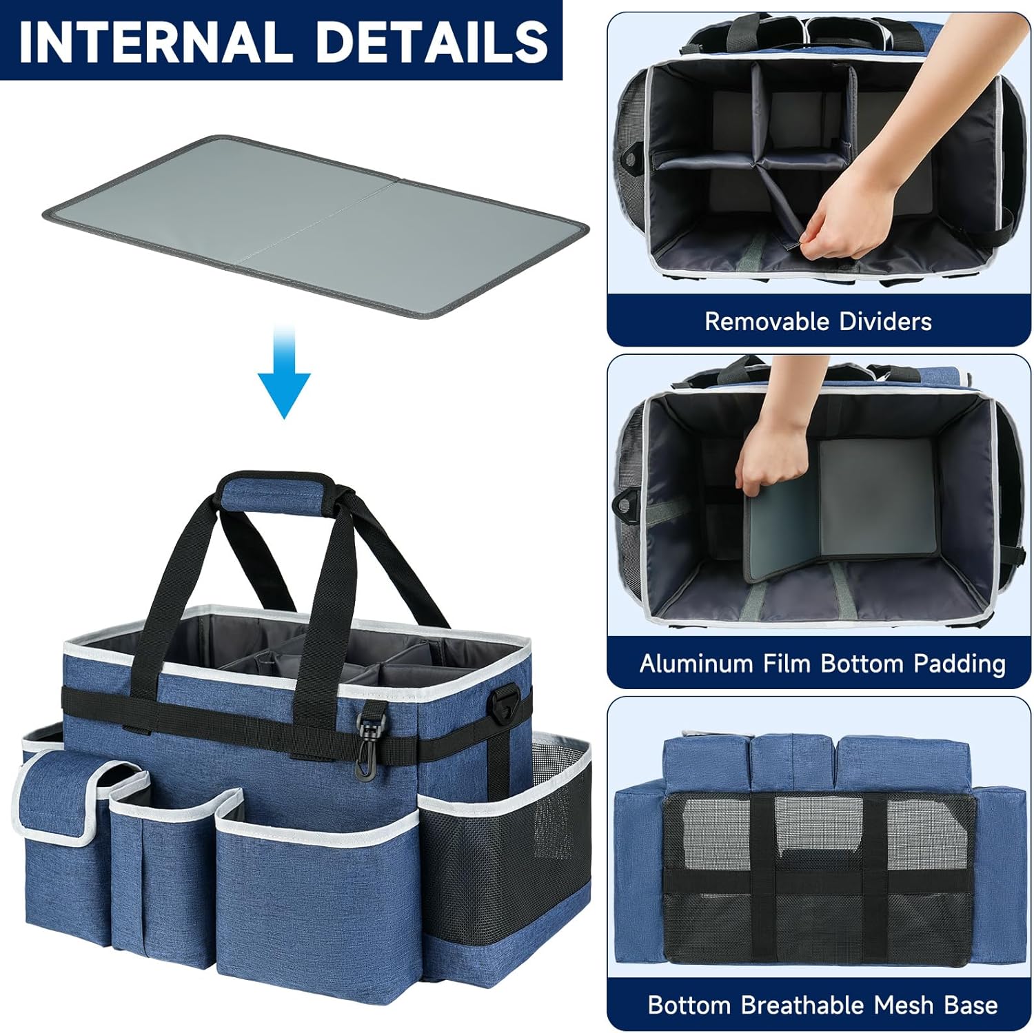 Cleaning Caddy Bag,Large Cleaning Supplies Organizer with Handle for Housekeepers, Blue