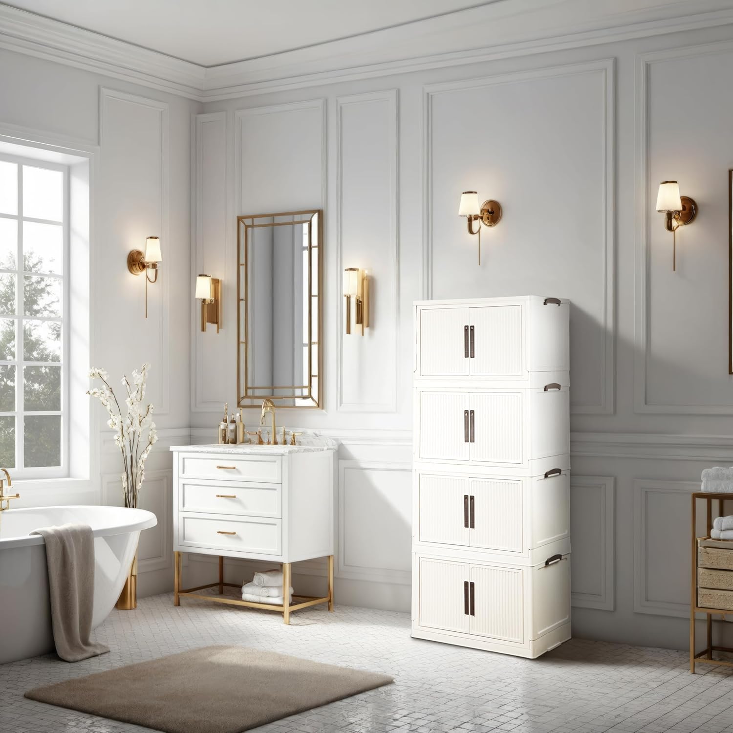 • EASY TO MOVE: Equipped with four universal wheels, these stackable storage bins can be easily moved from room to room, enhancing their applicability in homes, kitchens, bedrooms bathrooms, closets, bathrooms, offices and more.