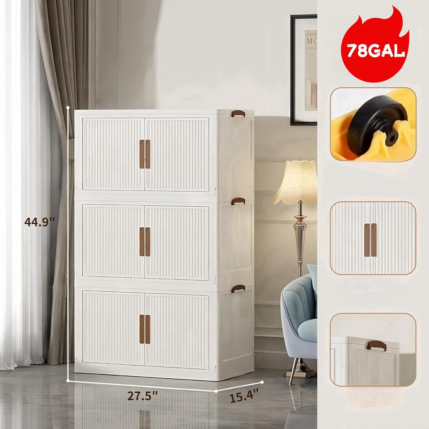 312QT/78GAL Stackable Storage Bins with 1 lid Foldable Storage Drawers with Wheels for Clothes Collapsible Storage Bins Container with door for Home,Office, Dorm Room(104Qt X 3)