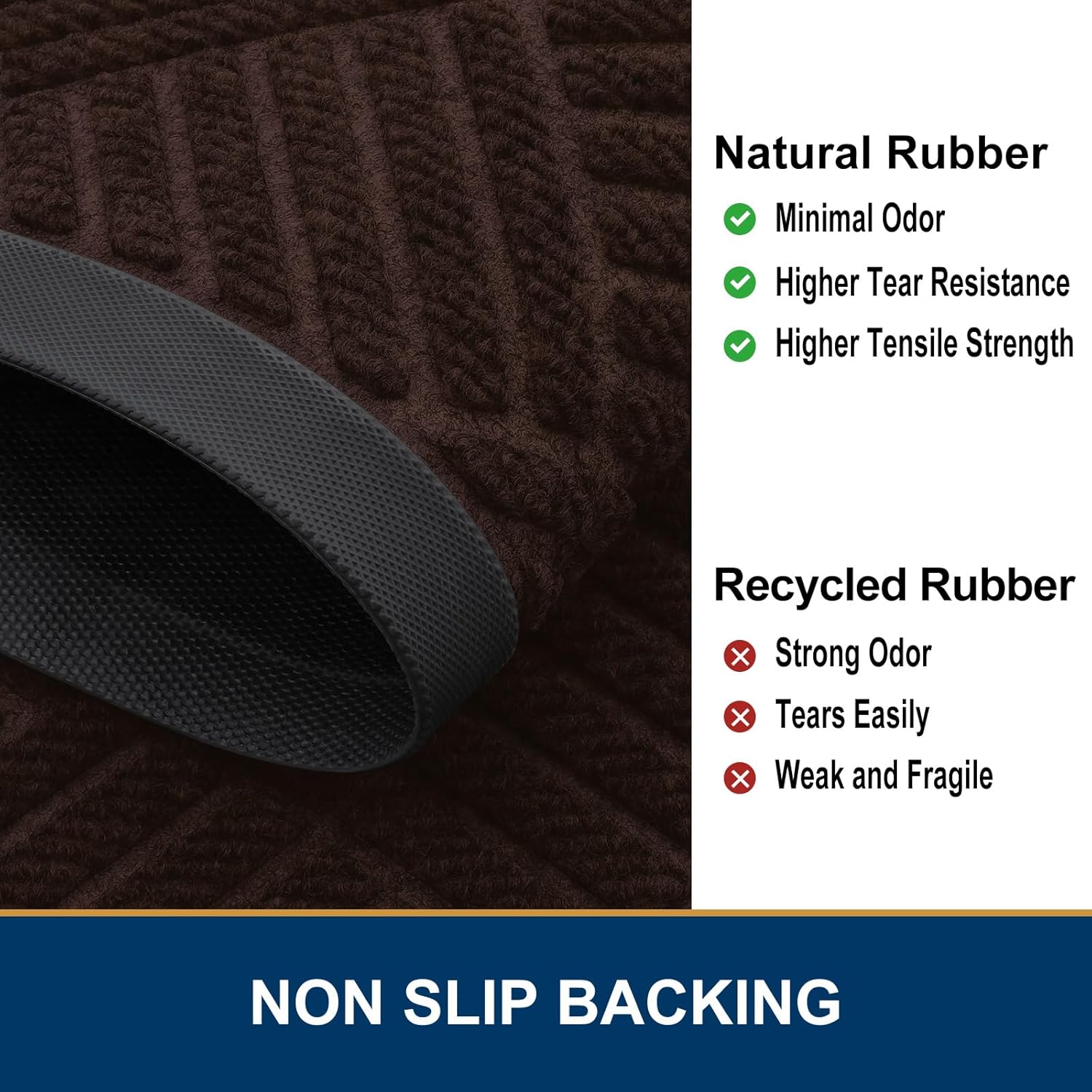 - Sturdy & Non-Faded: Good quality natural rubber makes the door mat long-lasting. Excellent tensile strength and not easy to tear withstand all weather and seasonal changes. Odorless and fastness to fading makes the process of reuse more pleasant