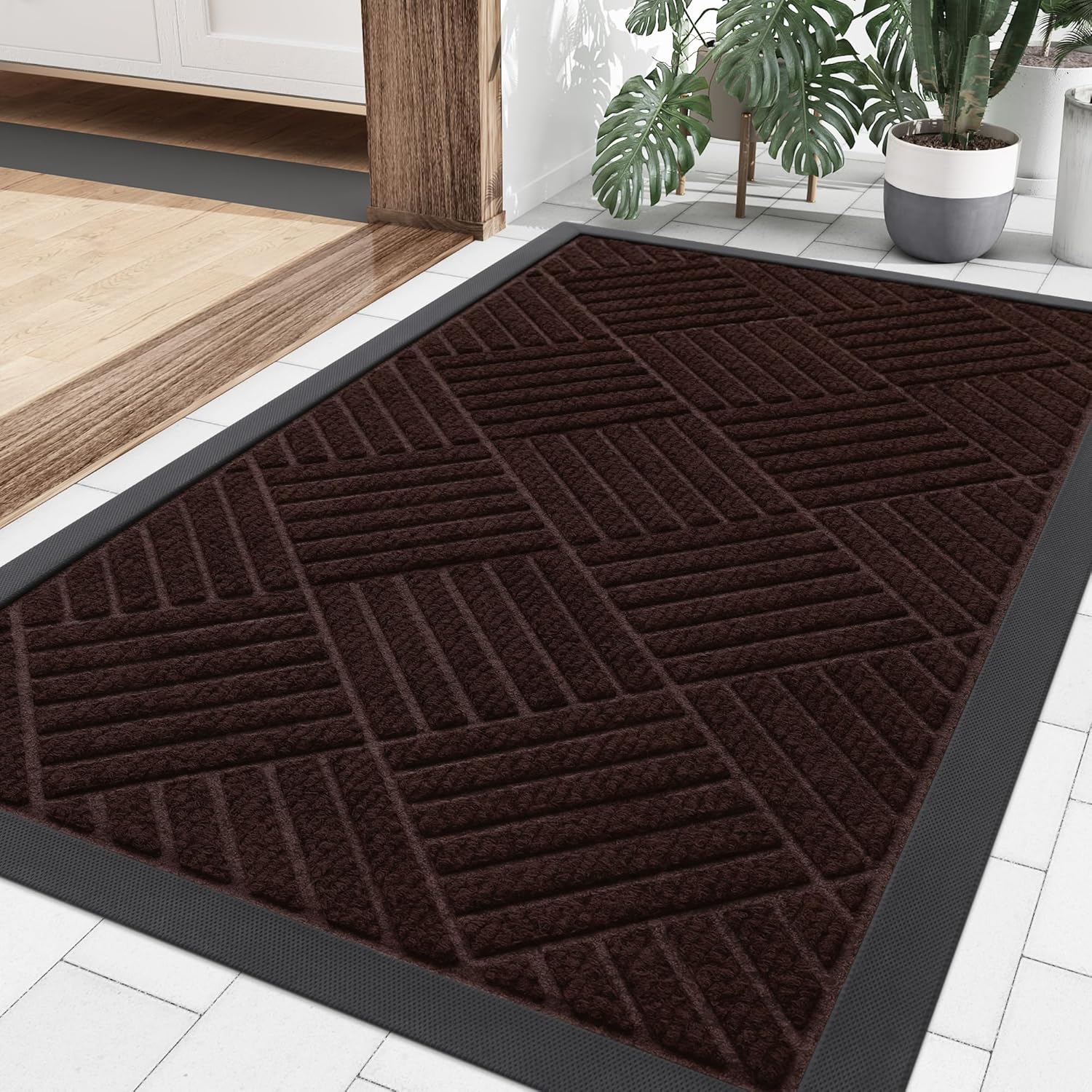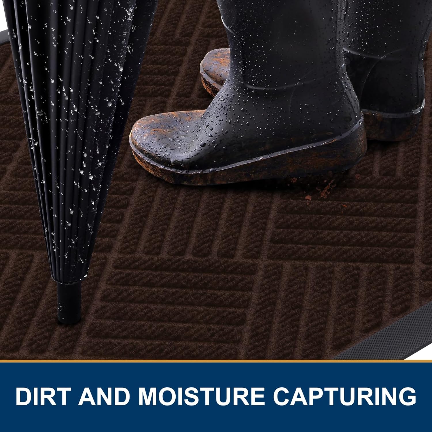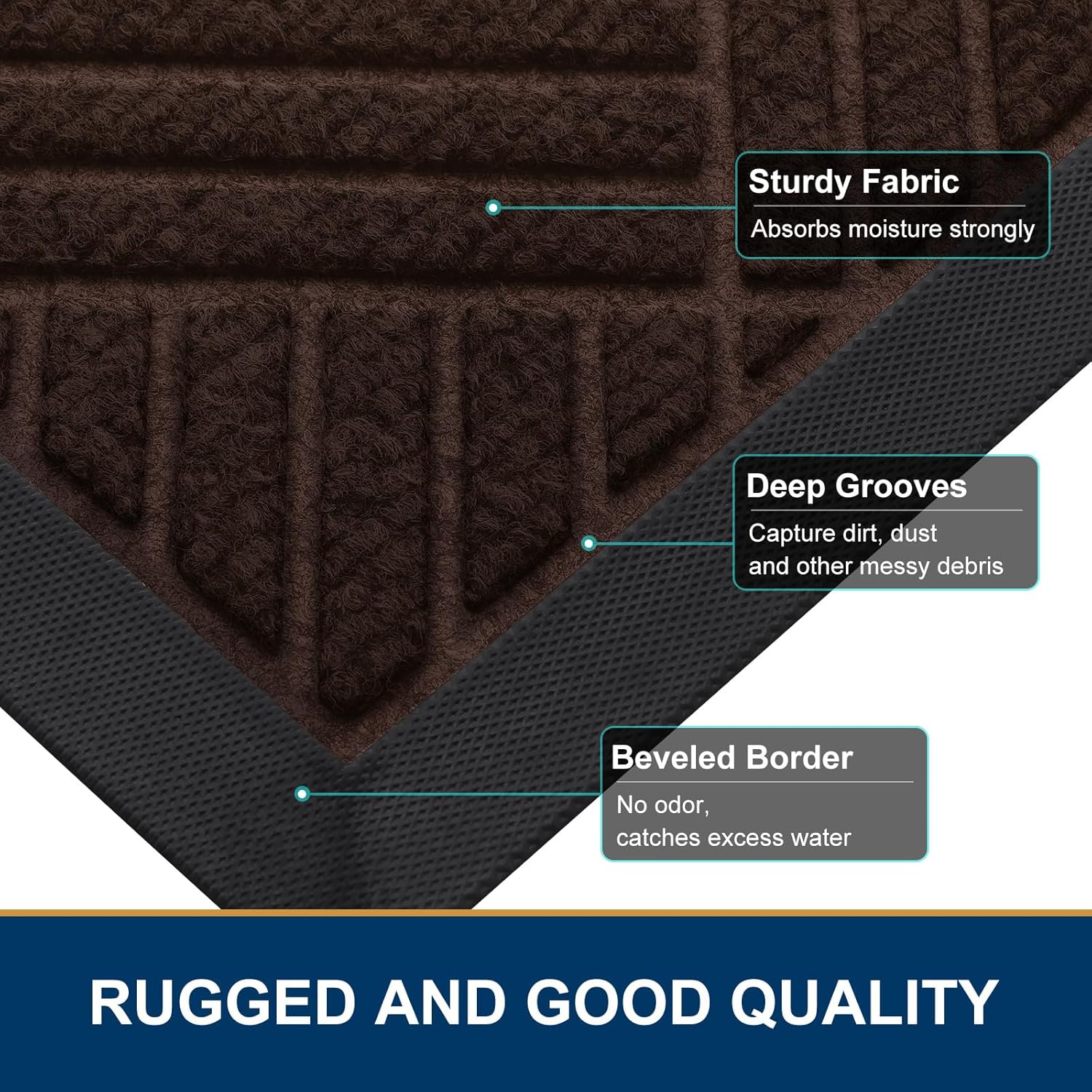 - Capture Dirt and Moisture: The surface of the Smiry door mat is crafted from woven polyester fabric. The deep grooves can effectively trap the dust, gravel, mud, sand and other clutter. The sturdy beveled rubber edge will not accumulate water. Even rainy, snowy or muddy weather will keep your home dry and clean